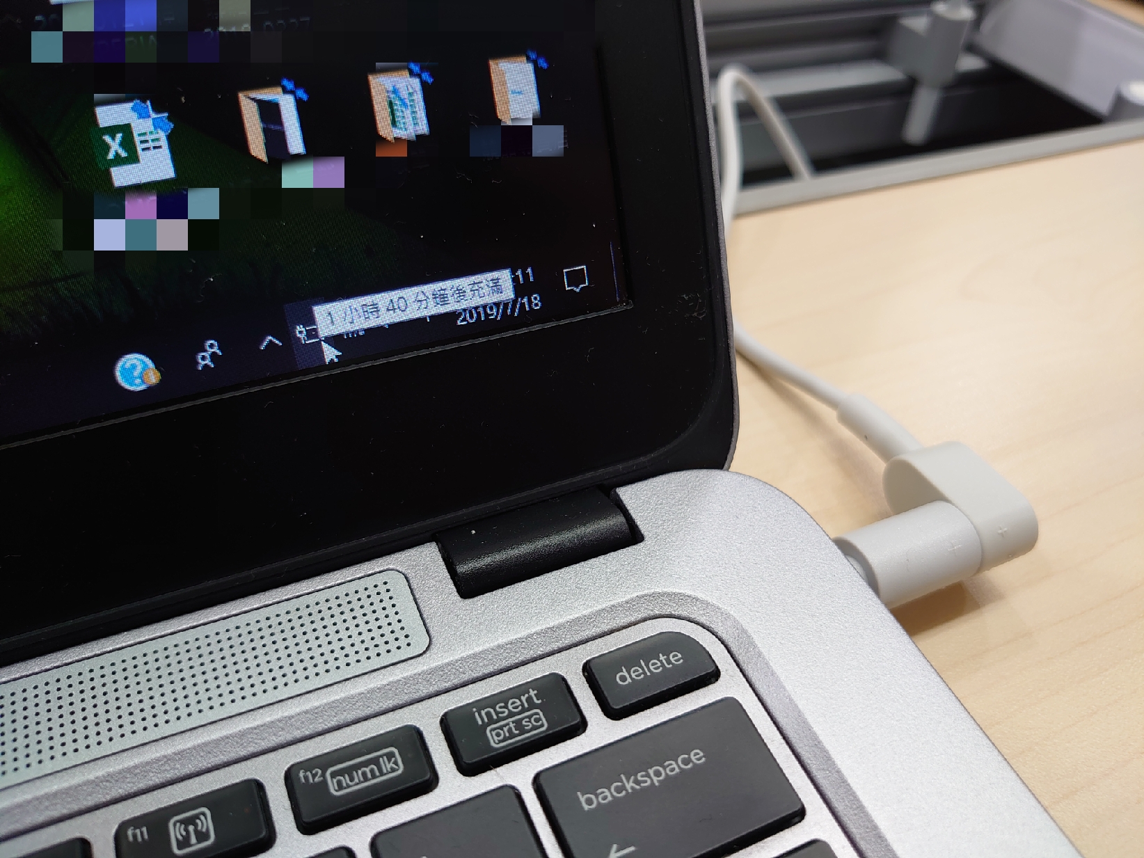 透過轉接頭的使用,在叔叔工作室內的三款筆電皆可以正常充電使用。