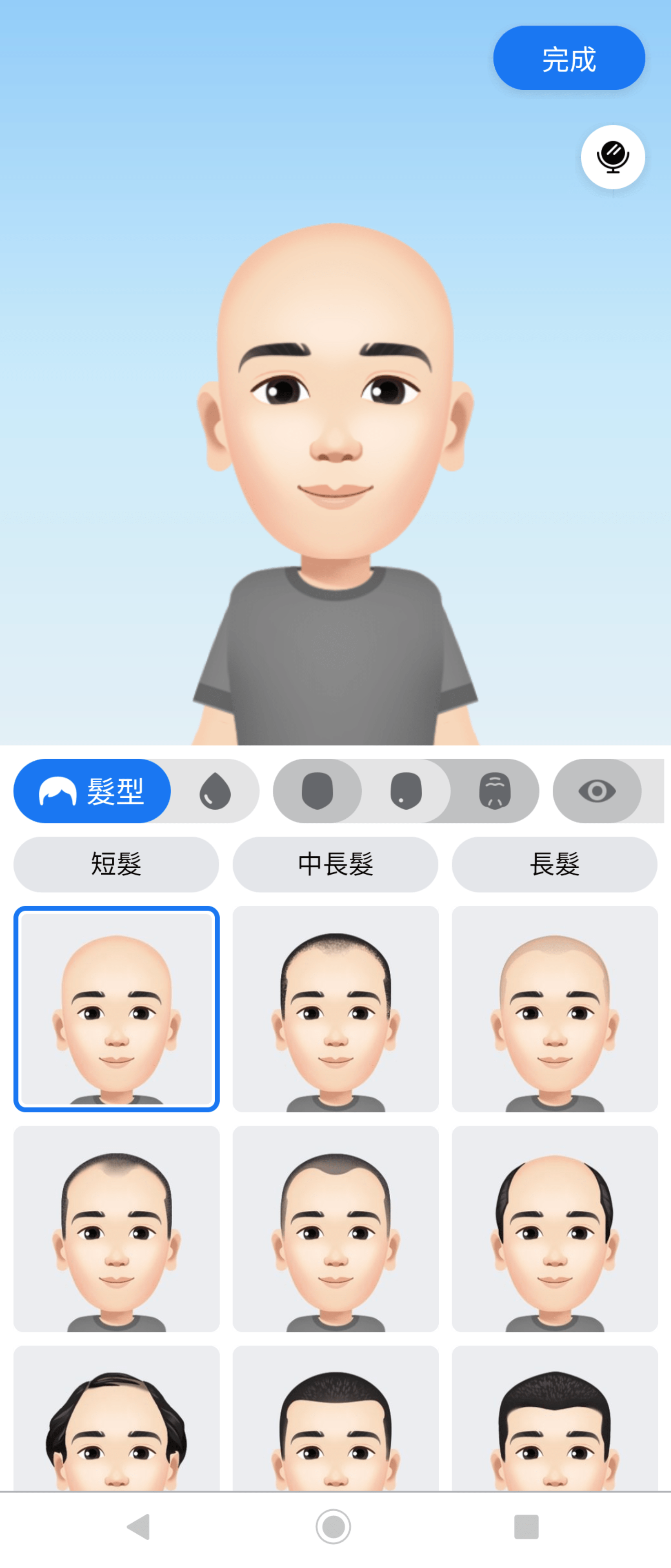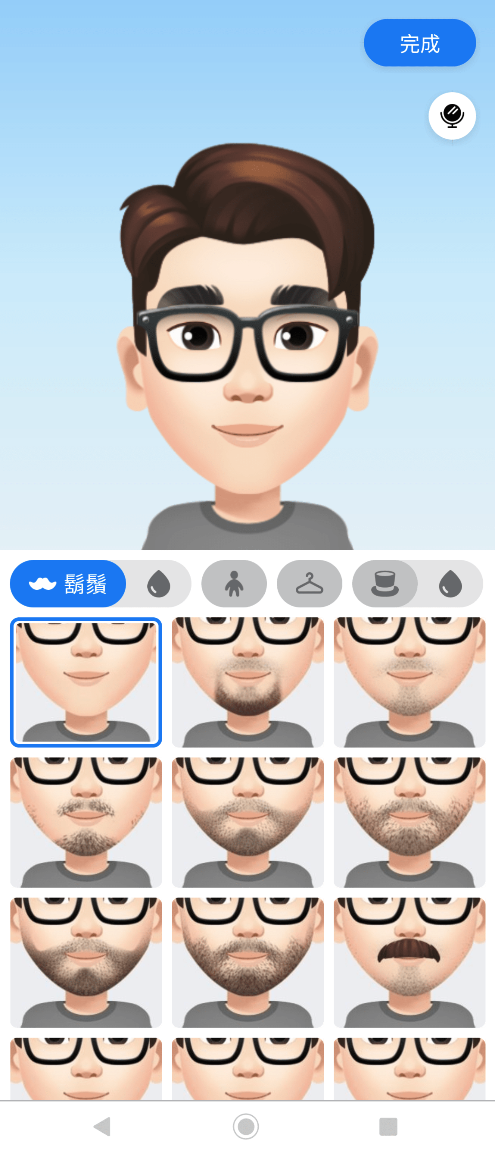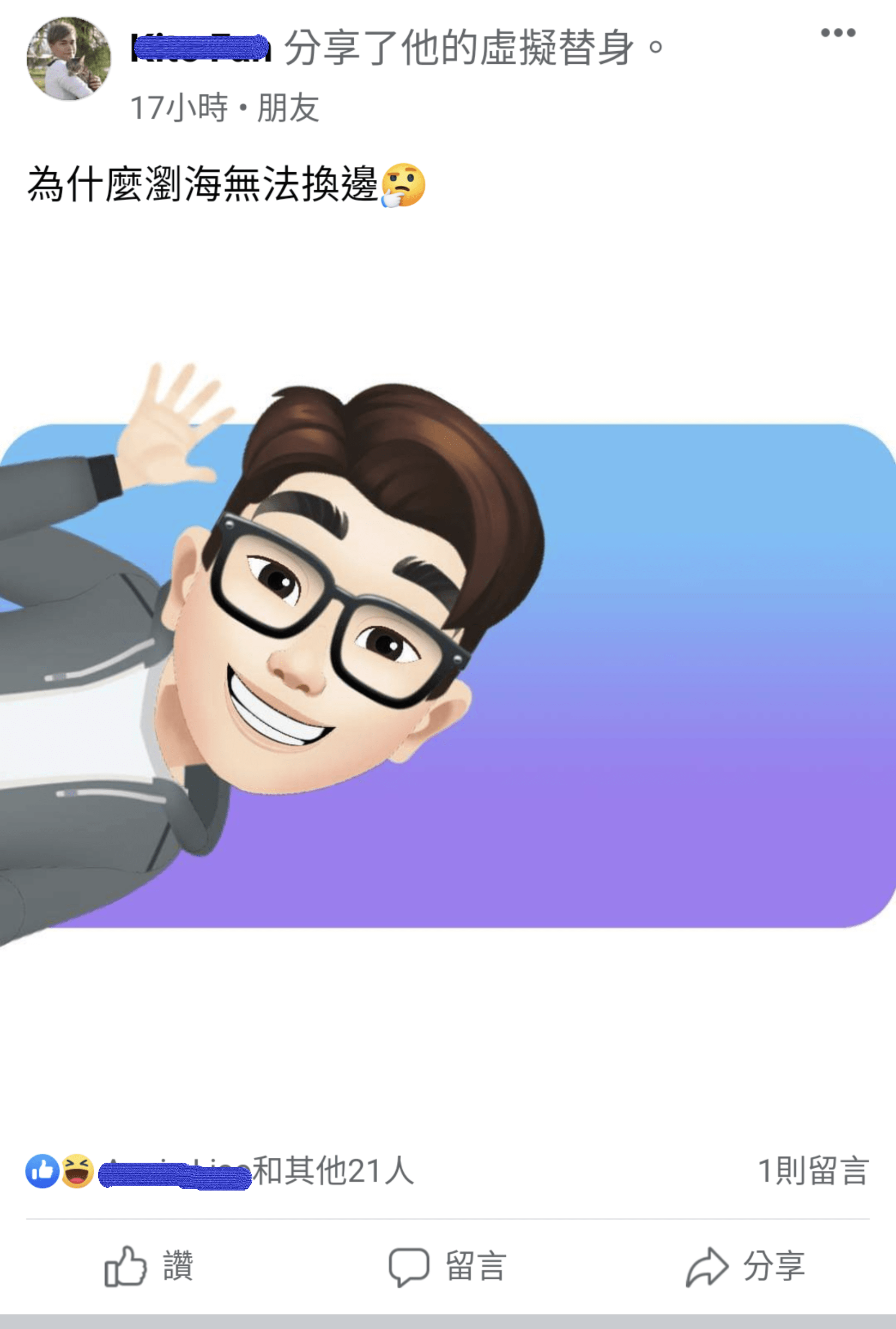 不過這個「虛擬替身」整體能調整的自由度我覺得可以再細緻些,例如我在意的就是瀏海為什麼不能換邊 (問號) ,畢竟凱叔的劉海是在右邊,因此在製作的時候就會想要調整至右邊,看起來的神情或表情也許就能再像些。