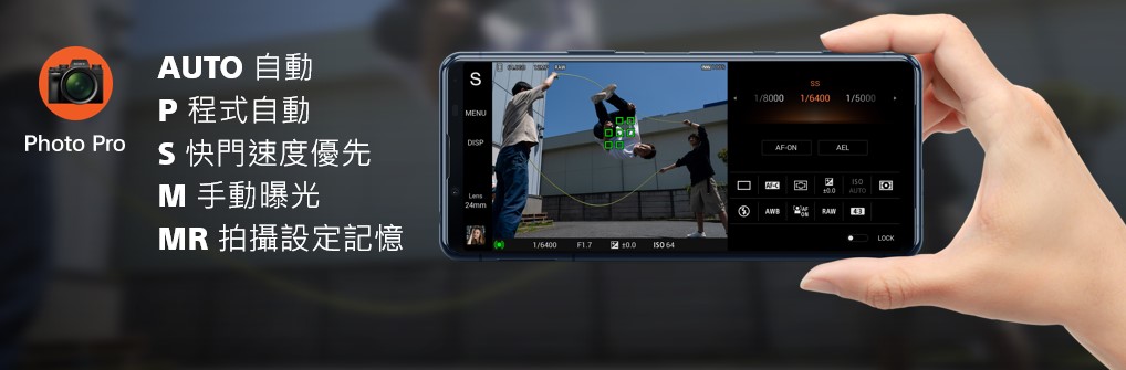Xperia 5 II同樣具備Photo Pro功能,打造如Alpha單眼相機等級的專業功能,並支援RAW檔拍攝,可選擇RAW檔儲存或是RAW+JPG格式儲存,高寬容度讓後製有更多可能。與此同時,Photo Pro功能更新增MR(拍攝設定記憶)模式,讓使用者能儲存自己最常用或是習慣的數值設定,在特別的拍照情境之下,只需輕滑界面就能輕鬆切換模式,快速套用預先登錄的數字設定,讓拍攝體驗更流暢、更迅速!