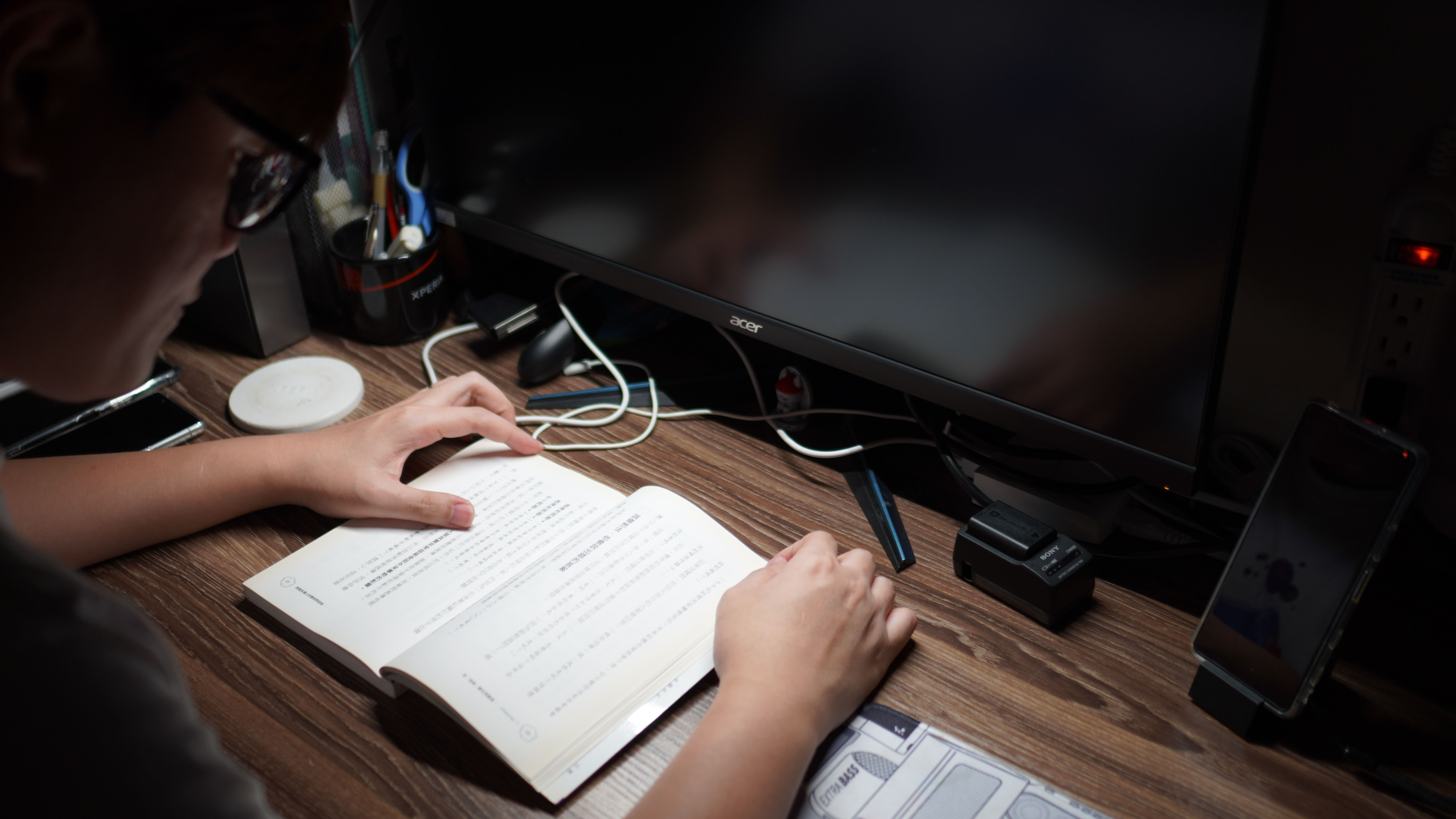 在工作中也絕對不會只有對著電腦螢幕作業,閱讀學習也能透過 BenQ Screenbar 螢幕智能掛燈 給予適當的亮光照明保護眼睛,因此使用上也算是一機多用,重點是如果你的書桌較小這樣使用還 不佔空間。