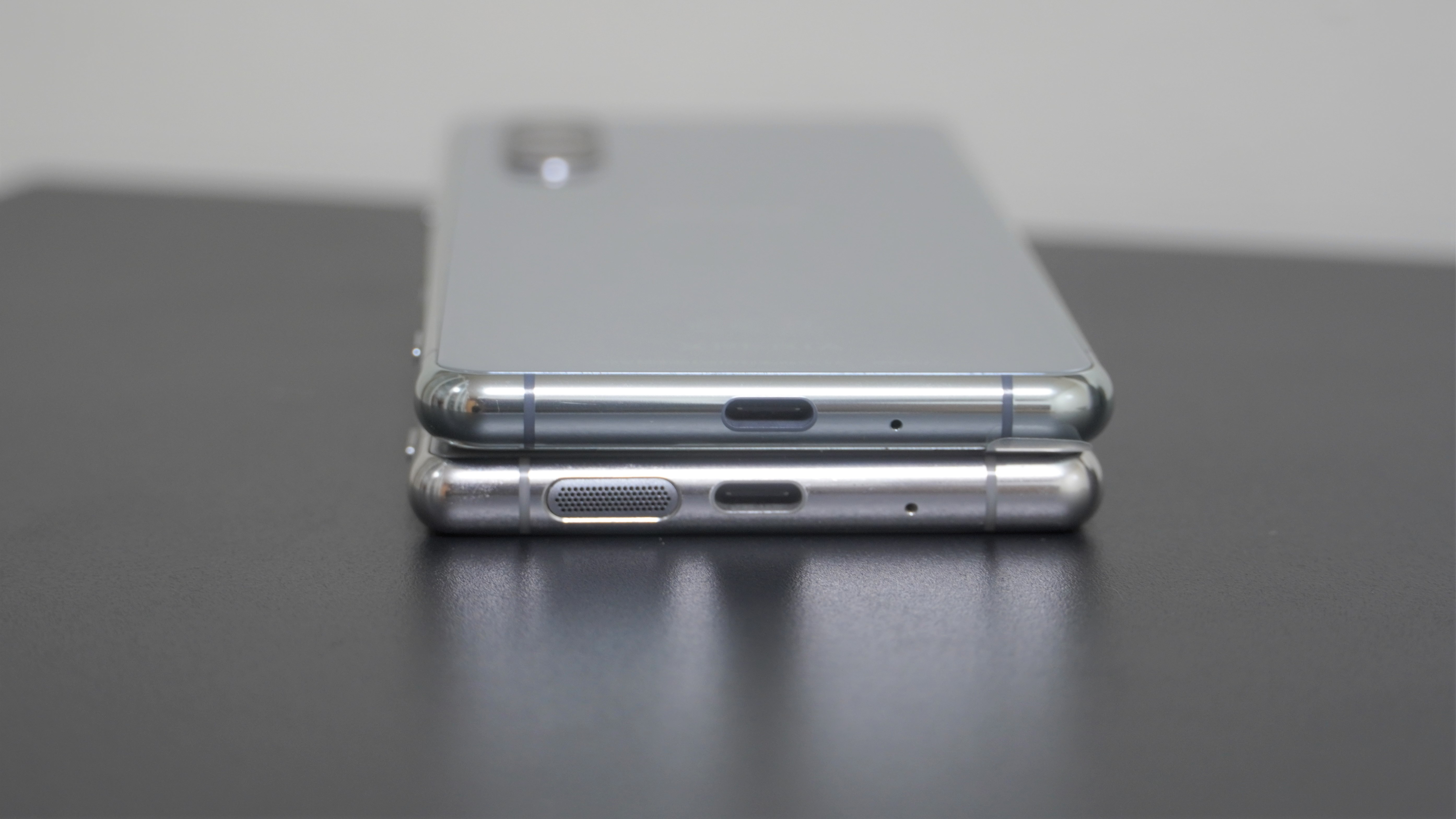 底部的喇叭配置,Xperia 5 II 的下喇叭也回歸螢幕正前方,與朝下方的 Xperia 5 不同。