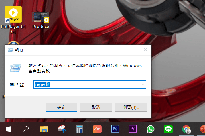 電腦的藍牙先關閉,接著開啟電腦的執行(快捷 WIN鍵+R),接著輸入regedit,打開註冊表。