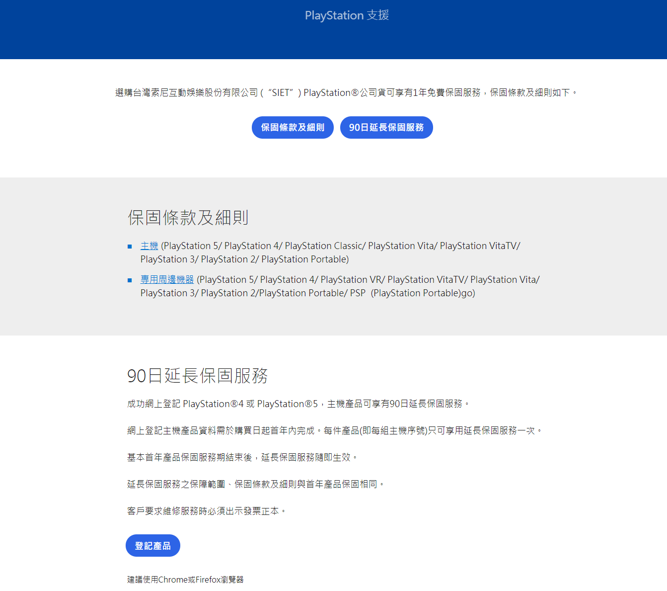 目前PS線上保固提供四種設備,但只有PS5、PS4、PS4 PRO、PSVITA有額外延長90天保固。