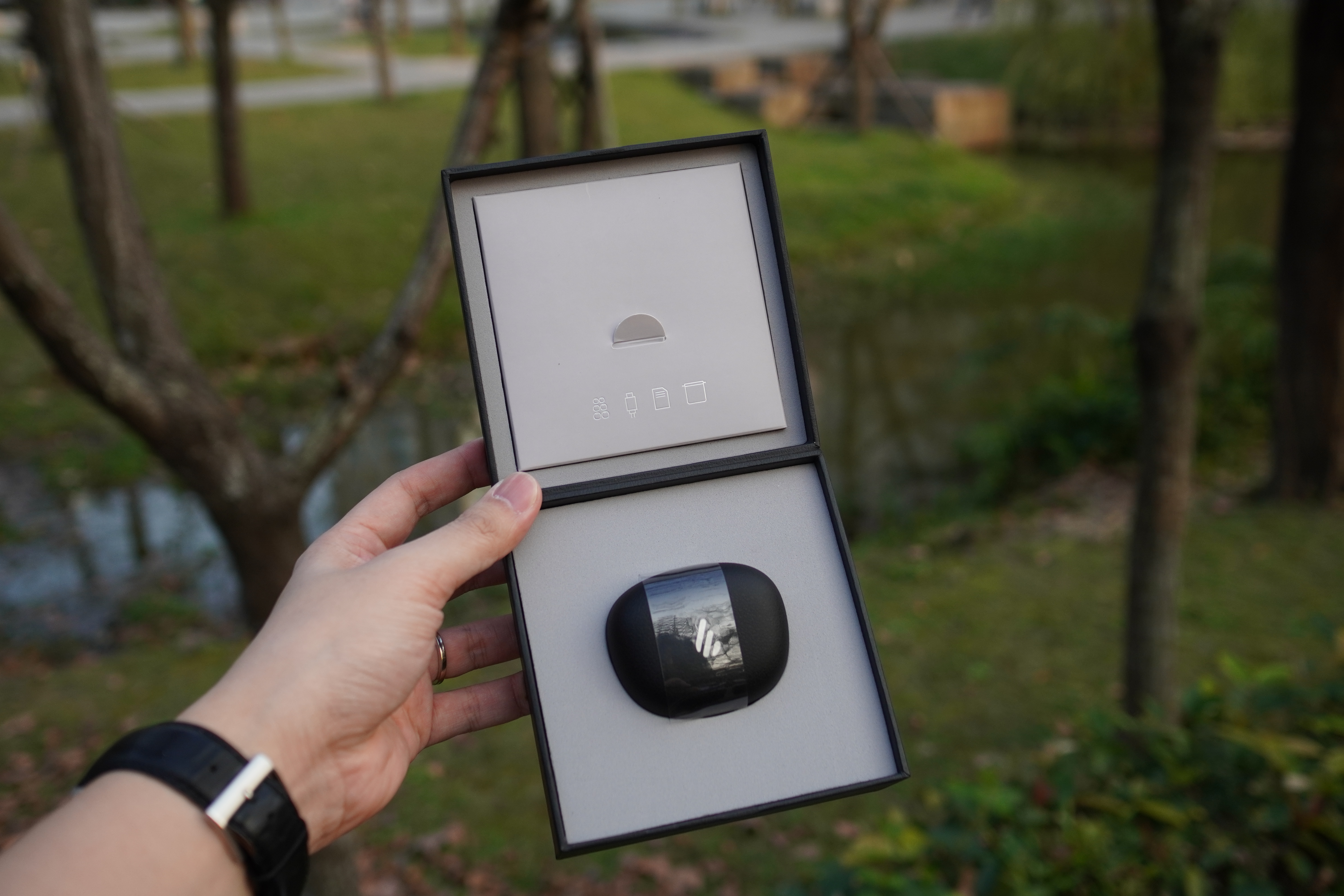 盒裝打開會看見類似珠寶盒般的包裝,廠商在產品包裝保護上有下心思,上下層皆有厚厚的海綿防護。