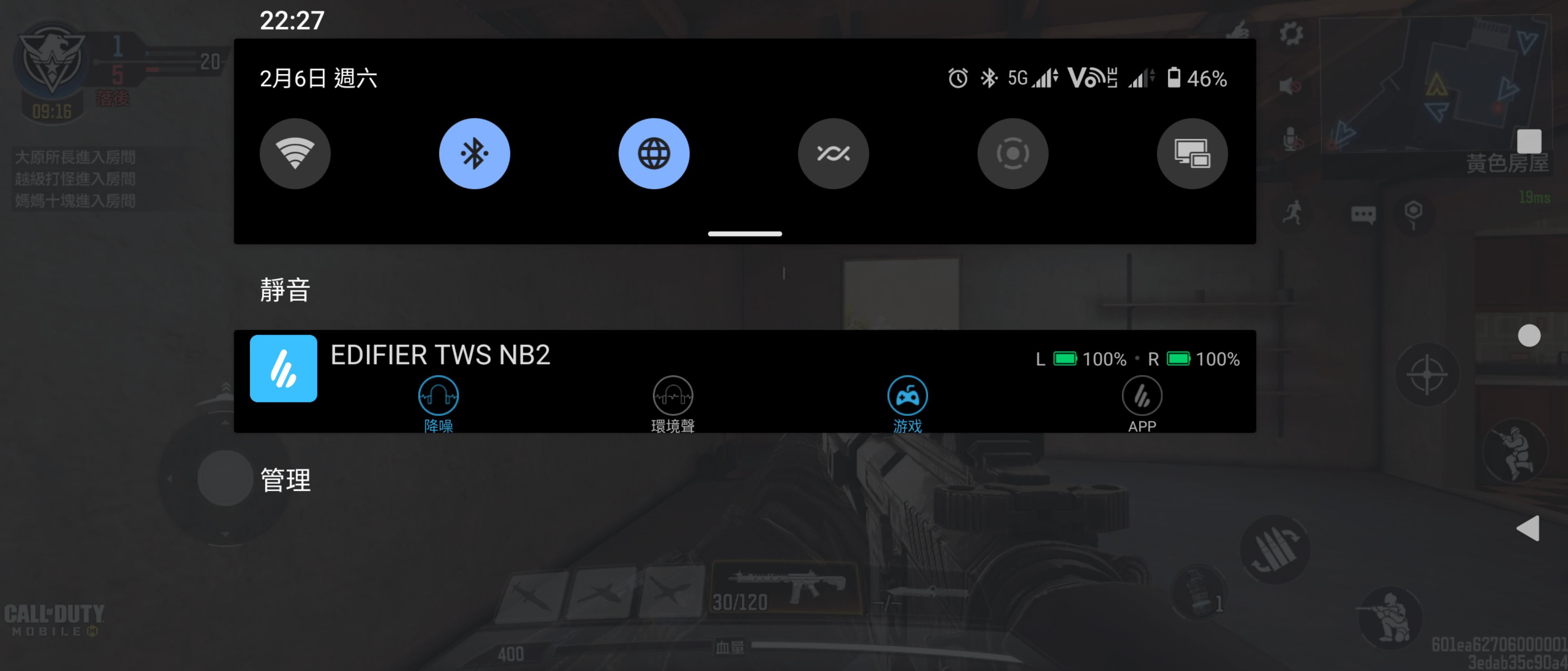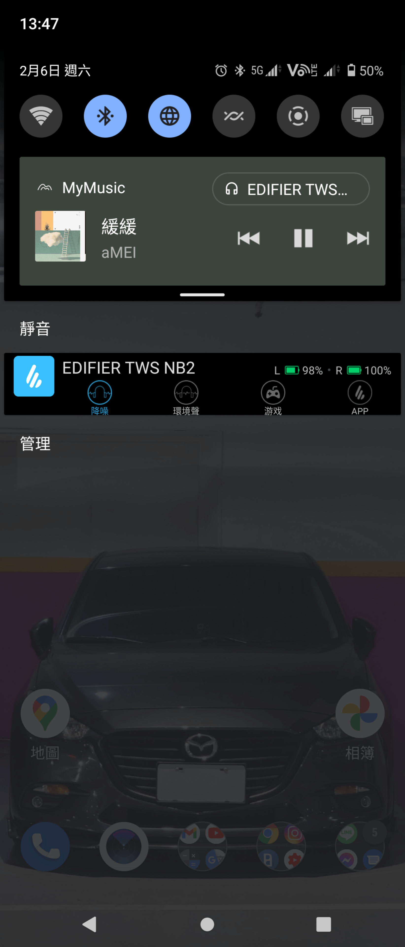 EDIFIER TWS NB2 本身有APP軟體可做使用,Android 或 iOS 都能從軟體商店端進行下載 EDIFIER CONNECT 做使用,程式安裝啟動後就能在手機上方快捷處看見當下使用模式及電量顯示。