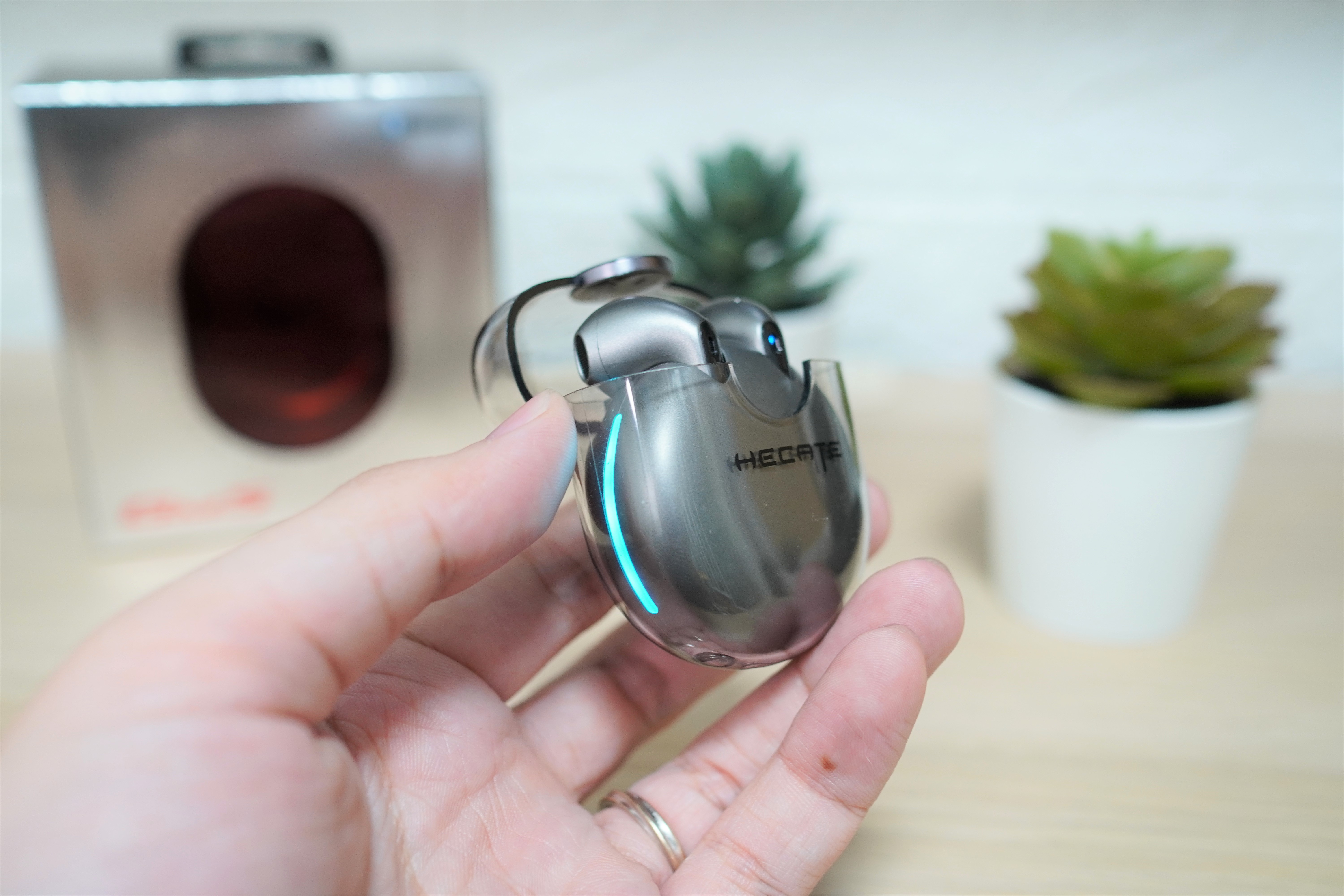 打開盒裝可以先看見HECATE GM5本體,在充電盒的設計上採用透明外盒搭配充電艙的設計。