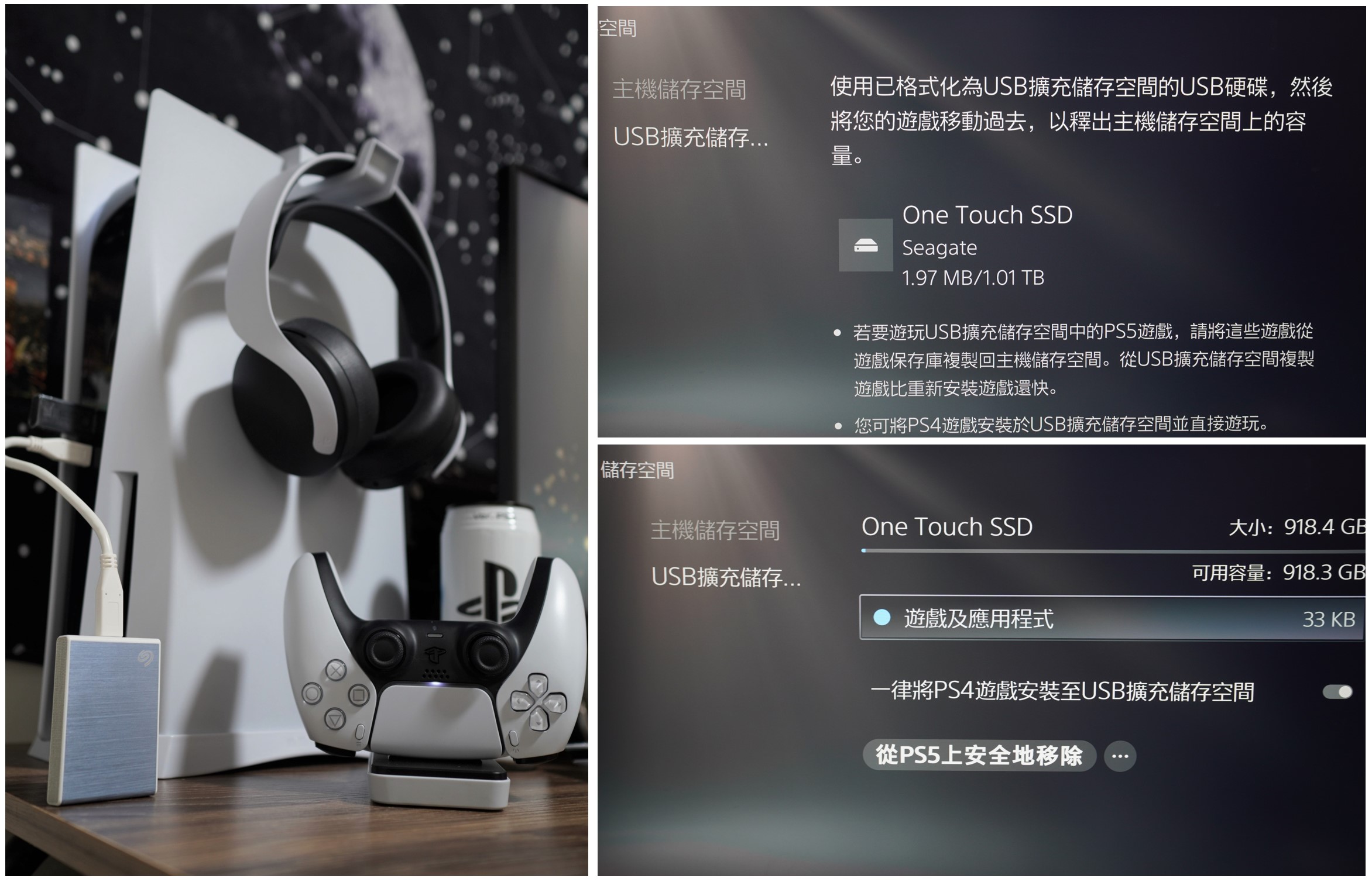 PS5遊戲主機所搭的USB規格可以相容到USB 3.2 Gen2x2,但是卻僅能做單一通道 Gen2 (10Gbps) 的速度,因此 Seagate One Touch SSD 支援的 USB 3.2 Gen2 (10Gbps) 理論上傳輸速度是能跑到最大值的。