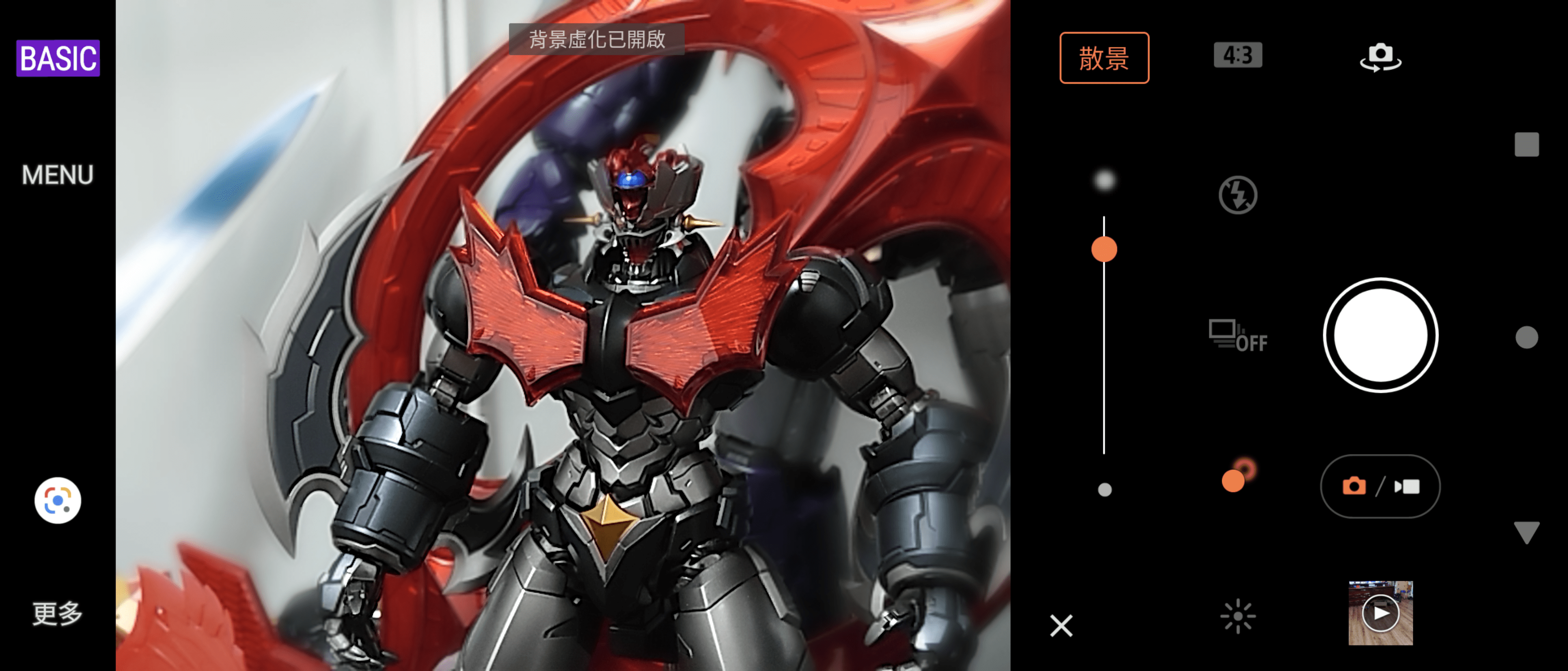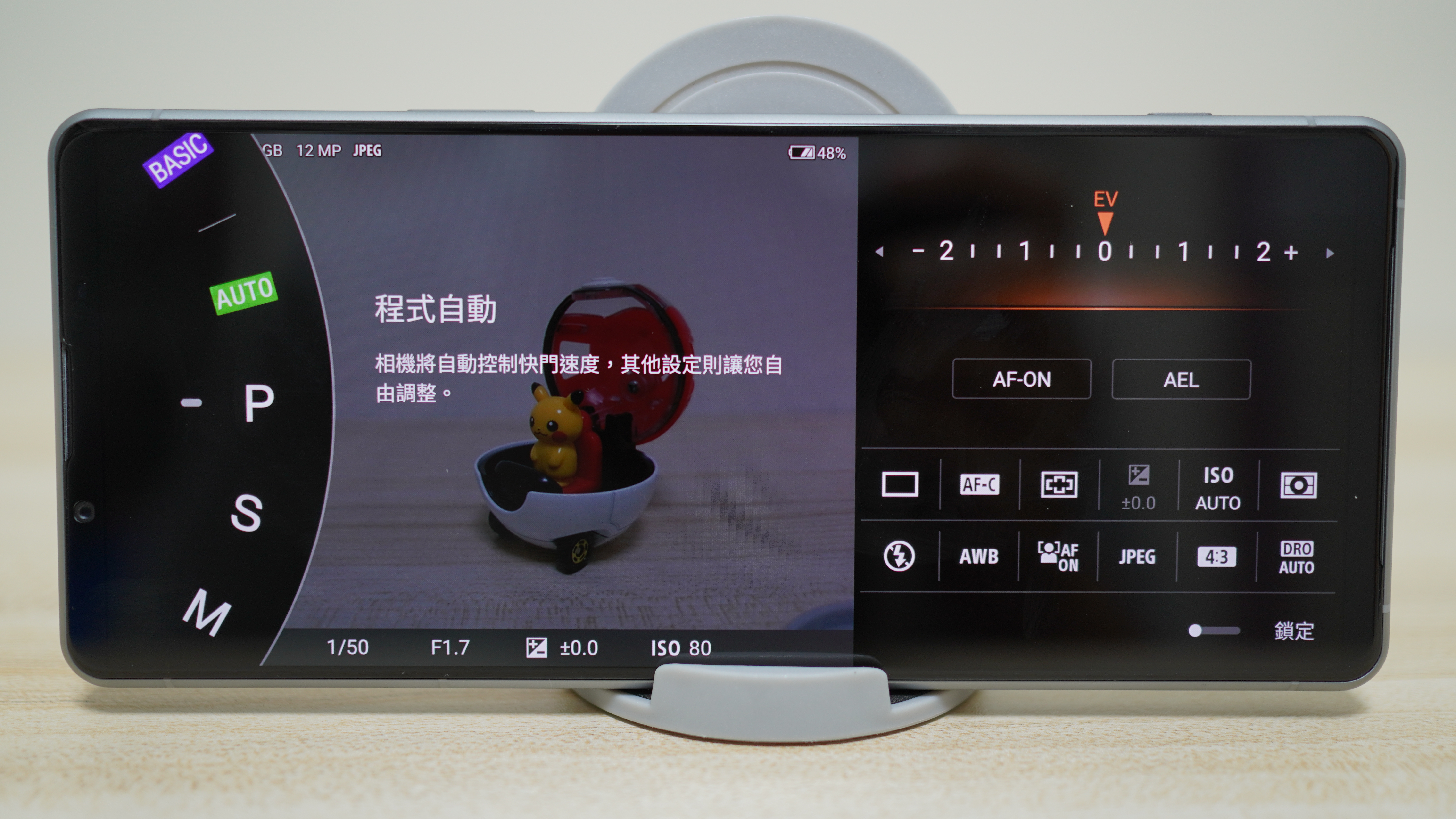 如果你有手動模式的拍攝需求,點選左上角的BASIC會跳出轉盤可以切換Photo Pro的手動模式,不需要跟 Xperia 1 II 那樣分兩個相機軟體切換。