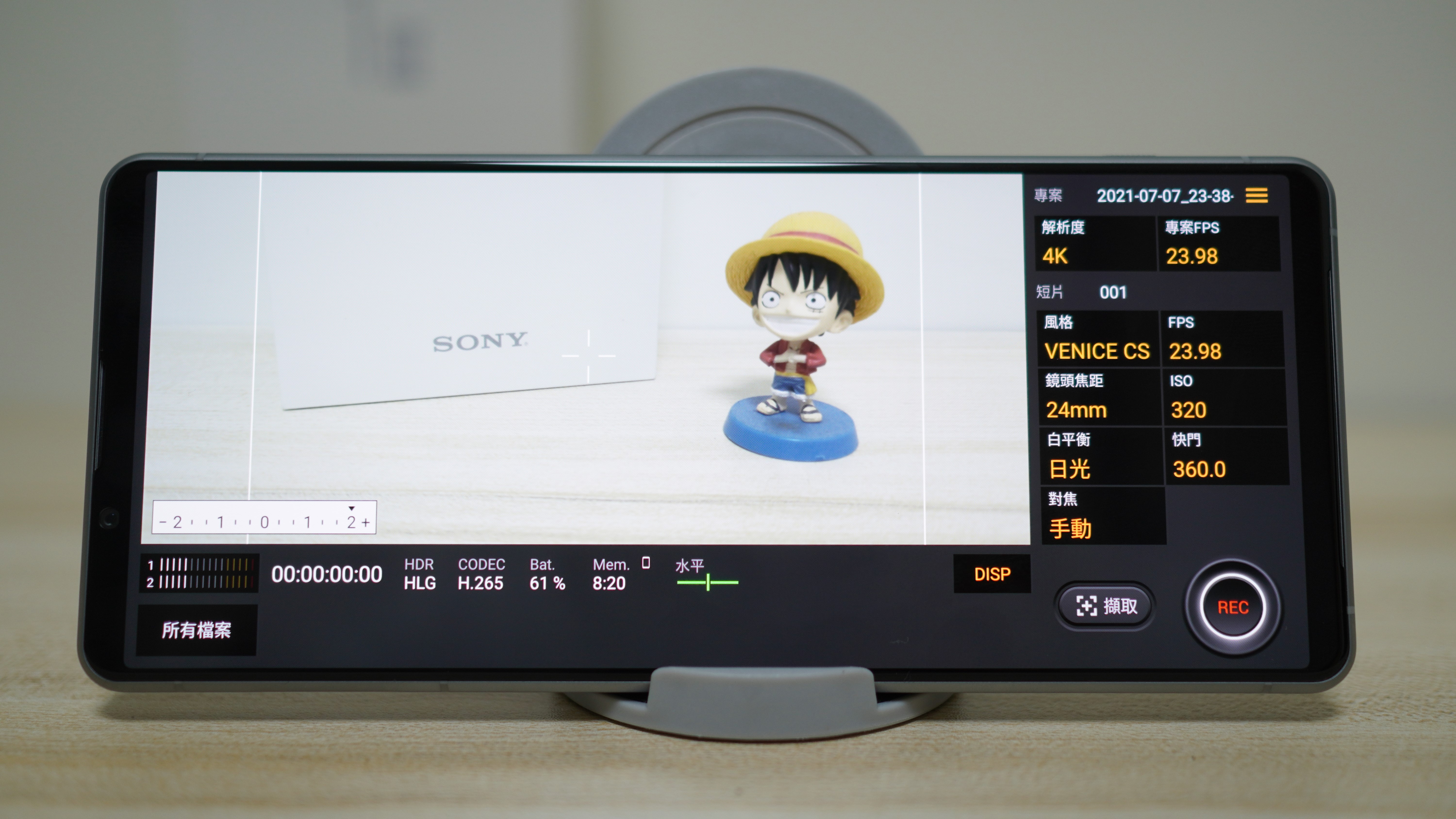 錄影的部分除了一般錄影模式之外Xperia 1 III 也有自家專業錄影軟體Cinema Pro,三個鏡頭四個焦段手動玩拍照不夠錄影也能手動調整ISO、快門時間、每秒採樣張數FPS,並且能在拍攝時就套上濾鏡可以減少後製時的時間。