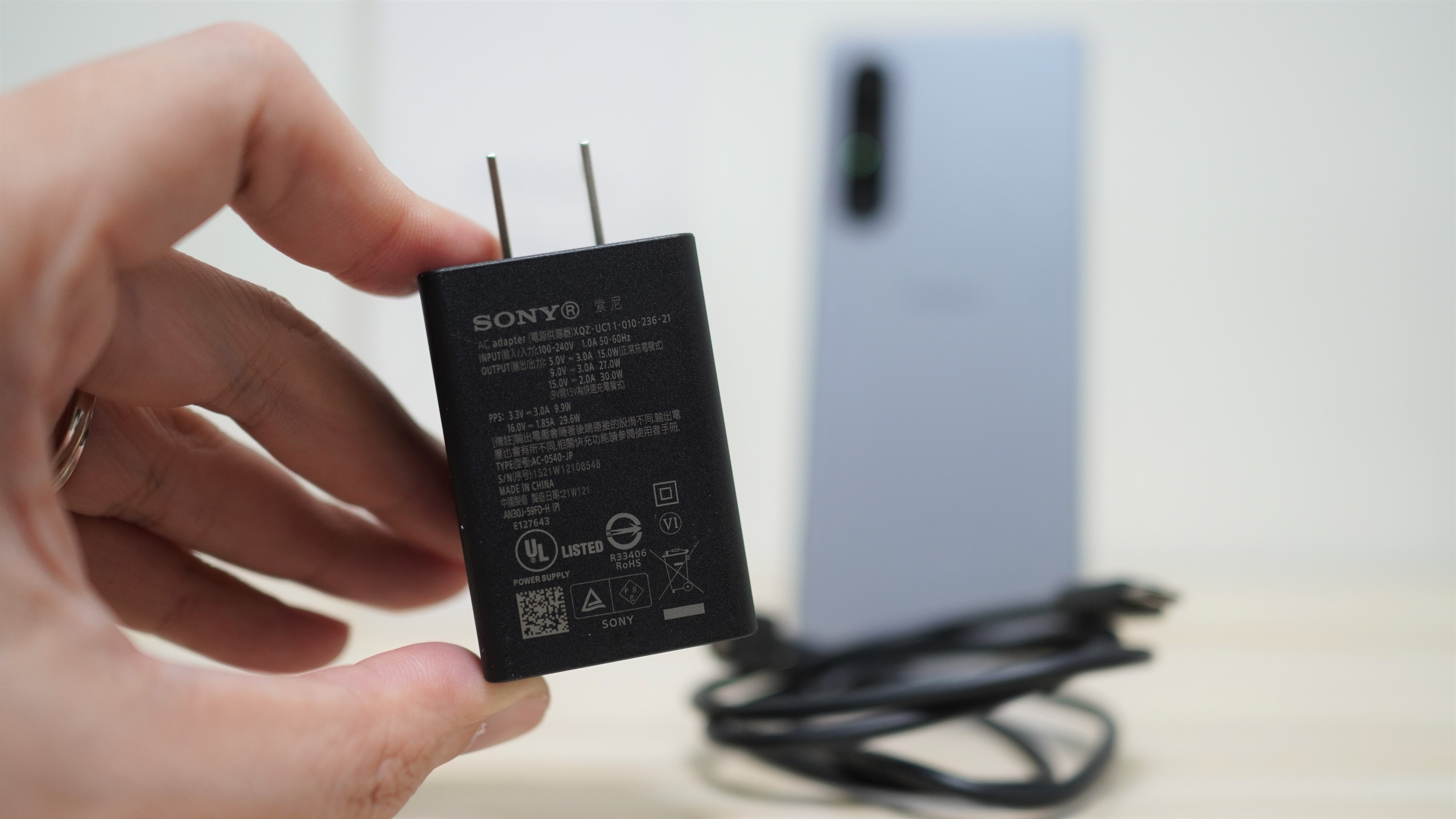 Xperia 1 III手機盒裝附贈全新設計的XZQ-UC1 30W PD快速充電器與雙頭Type-C的傳輸線。