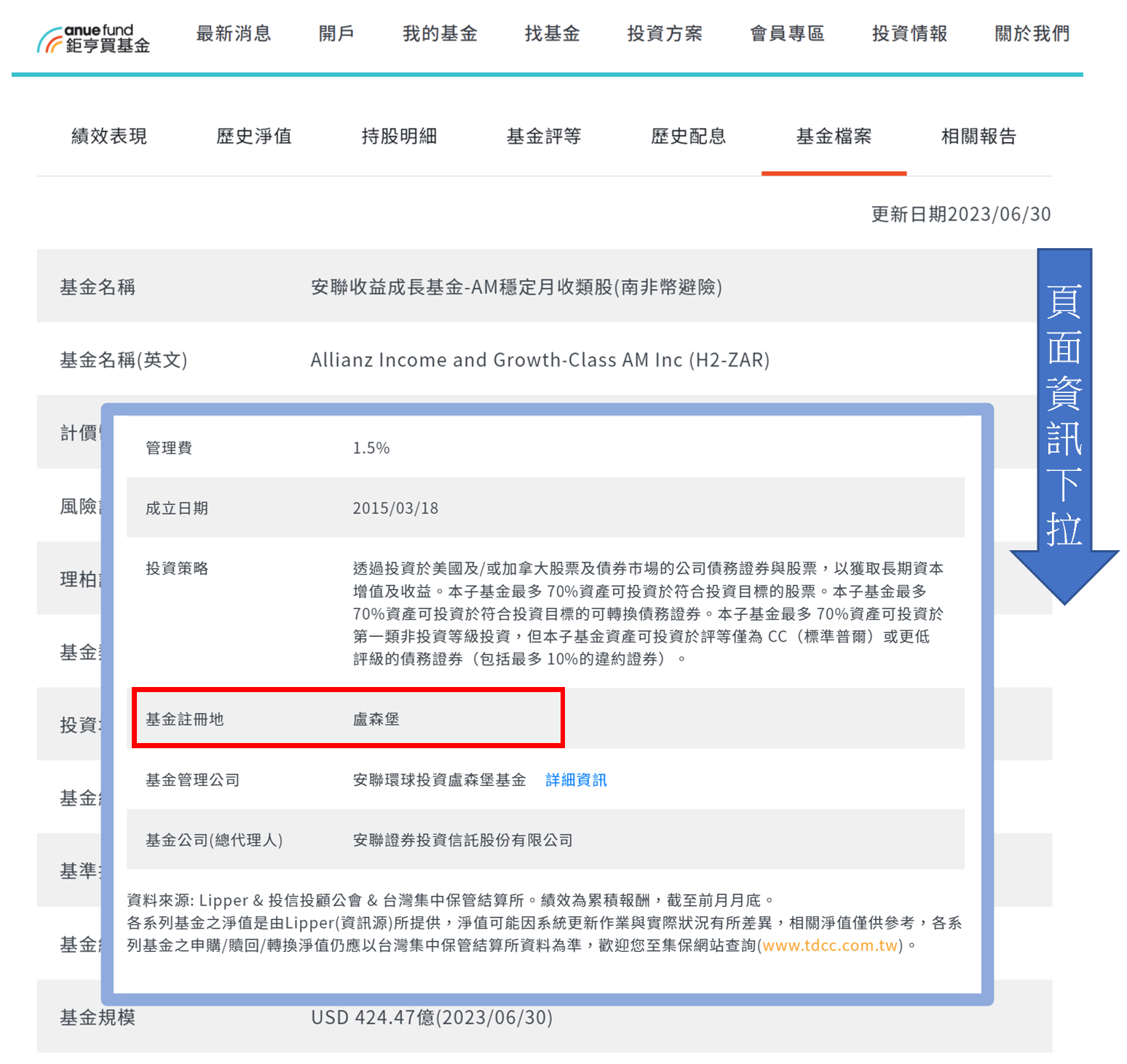 接著點選「基本資料」,就能查閱基金註冊地,透過簡單工具就能了解該檔基金標的物是境內基金或境外基金,適用哪種課稅方式囉!