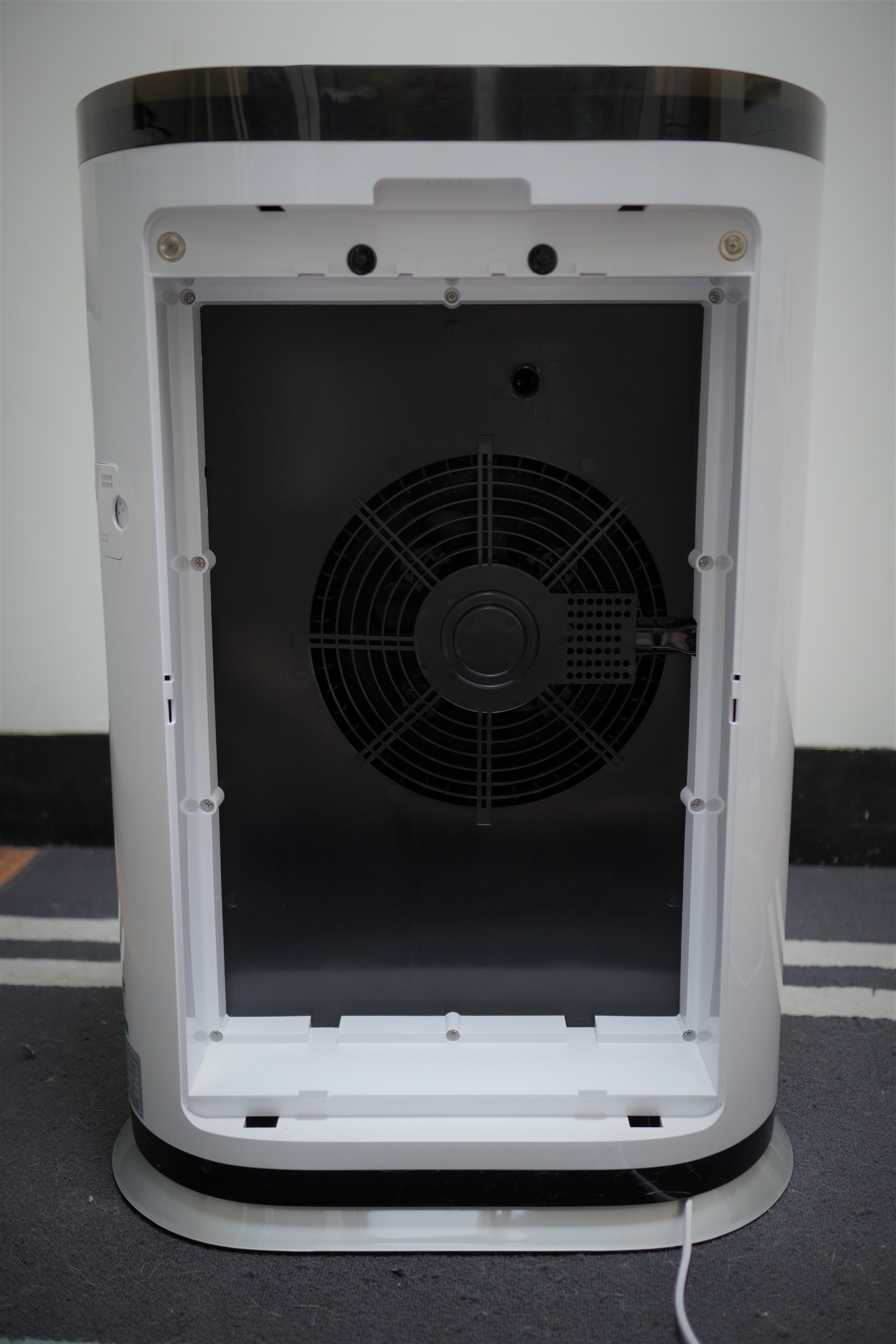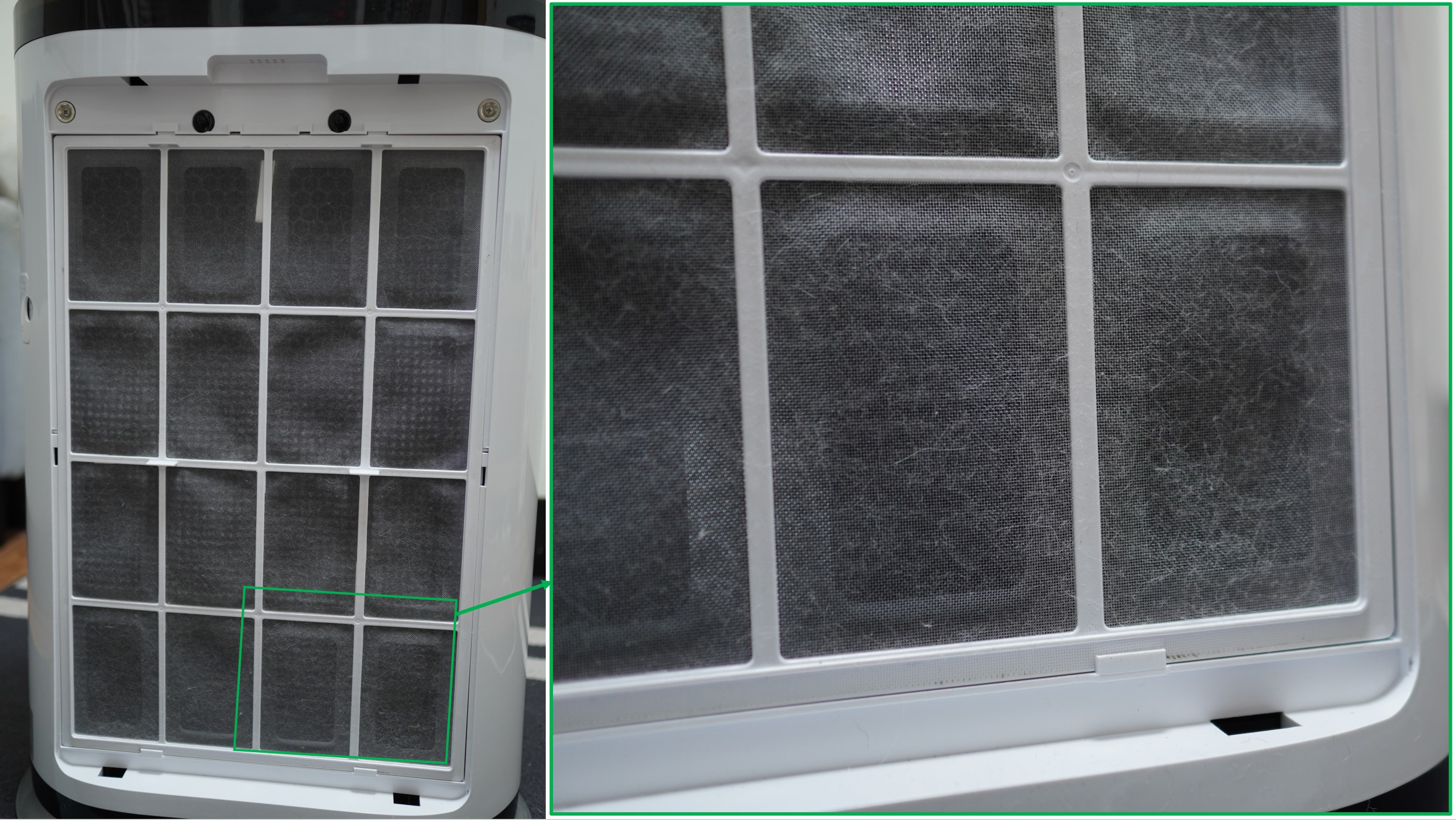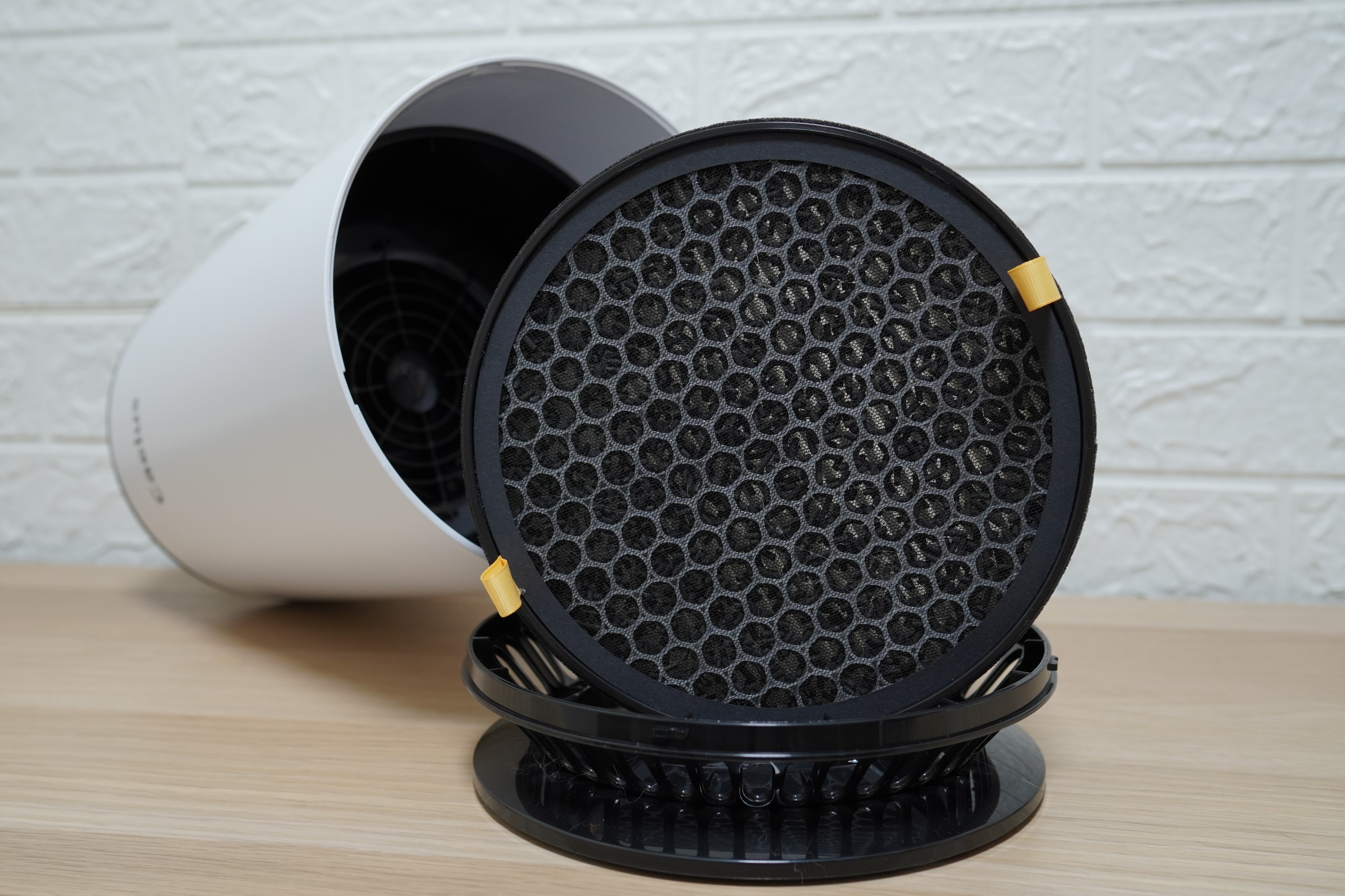 WL-AP600背面飾蓋能先阻擋大型毛髮,拆開飾蓋就能看見主要的過濾層濾網。