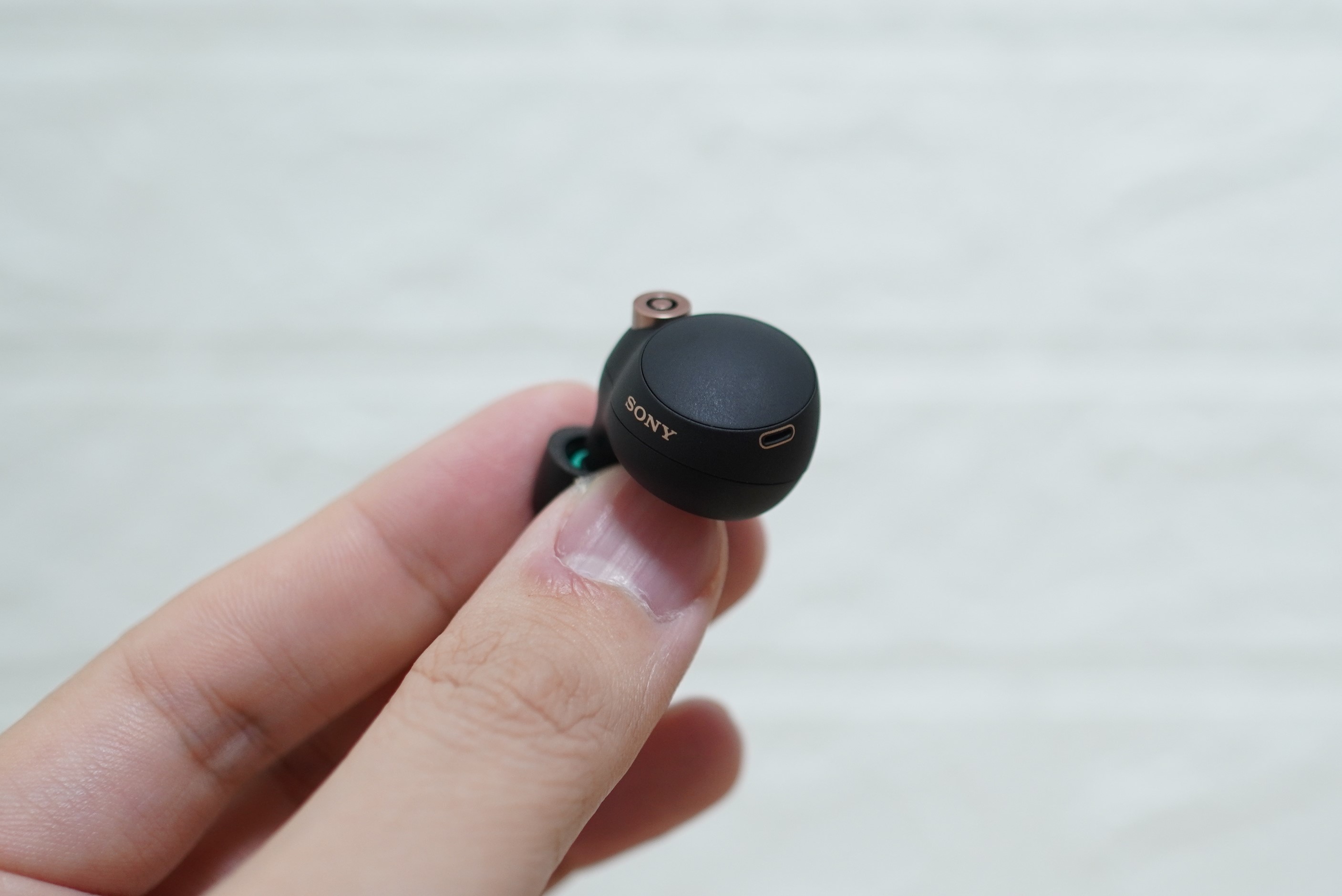 WF-1000XM4 的耳塞使用記憶型泡棉設計,並非一般耳塞常用的矽膠材質,優點是能擁更好的延展性,因此可以塑型出更貼近耳孔形狀,達到更好的物理性的被動降噪效果。