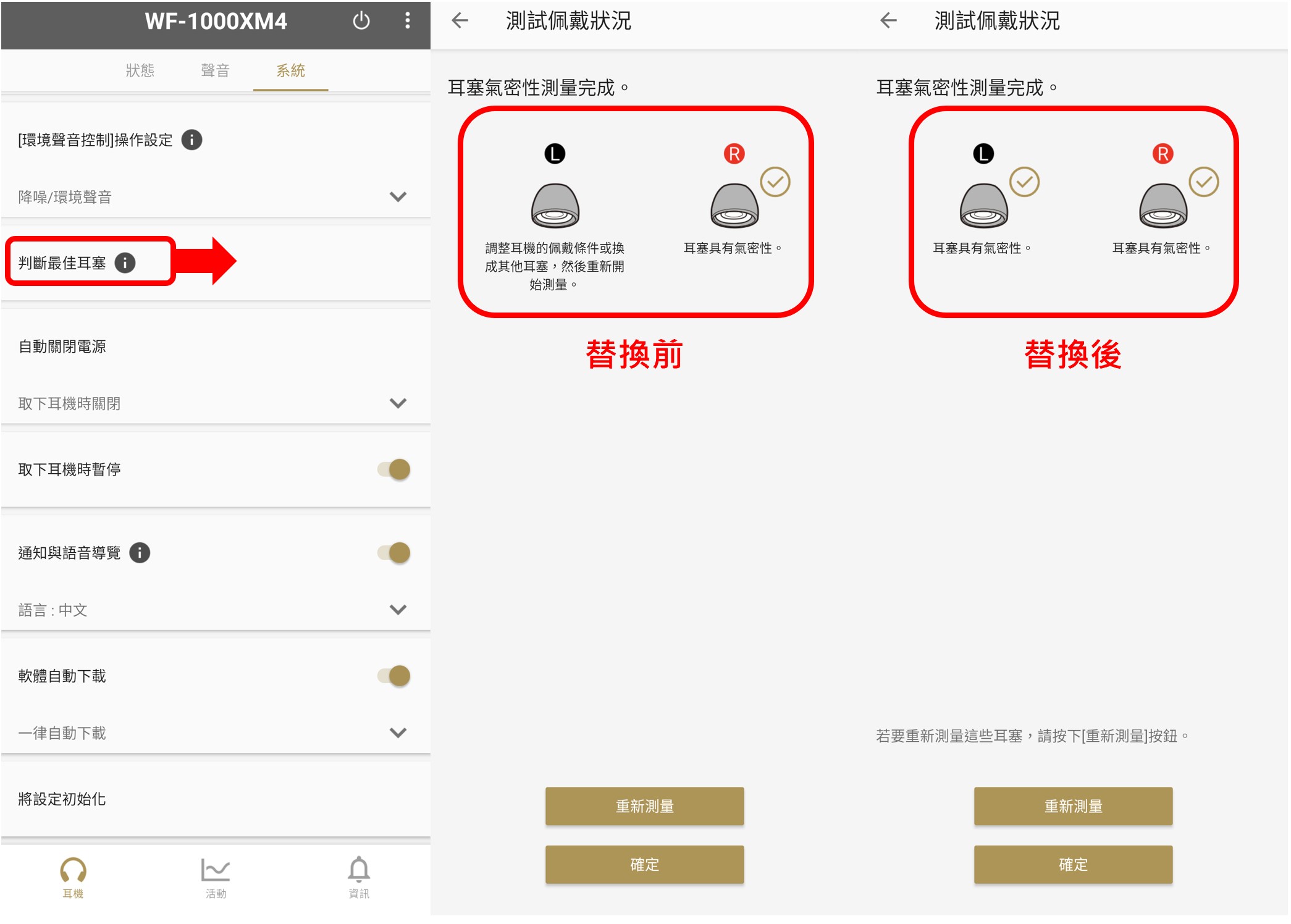 如果不知道自己該選擇哪一款耳塞尺寸,你還可以透過剛剛前面提到的「Headphones」這個app裡面的「判斷最佳耳塞」來幫助你找到適合的耳塞尺寸,適當的尺寸才能帶來更佳的物理隔音效果,讓降噪效果發揮最佳狀態。