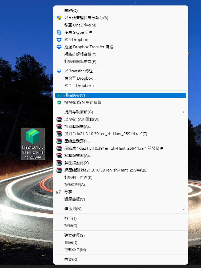 操作很簡單,你只需要對要掃描的檔案點擊滑鼠右鍵,就能看見掃描病毒的選項來使用,平常也可以針對剛下載的軟體或資料檔案做單一檔案掃描,避免檔案遭到植入惡意木馬軟體導致電腦受害。