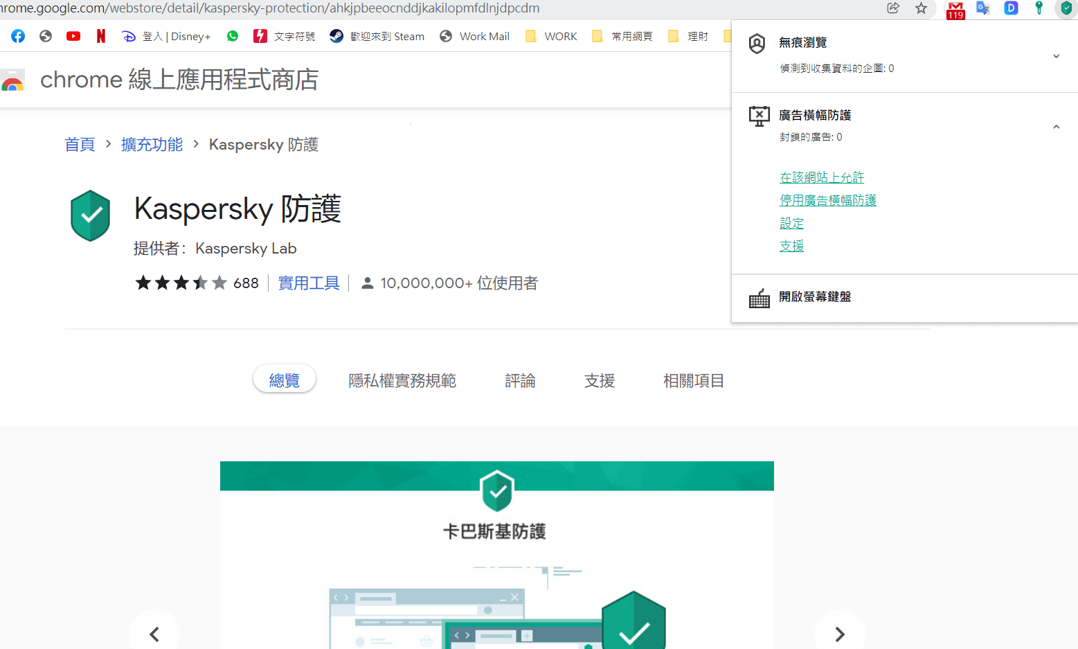 針對電腦網頁瀏覽器,不論是Google Chrome或Microsoft Edge都有提供Kaspersky防護來幫你阻擋廣告攔截,避免有些惡意網站會不斷顯示跳出式廣告不只影響觀看及閱讀、有時候更會因此讓電腦崩潰,干擾你的網路體驗。