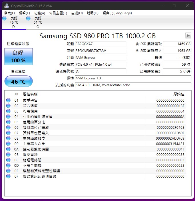 接著進入系統內就會看到儲存空間多出了我所安裝的Samsung 980 PRO含散熱片版本,可用容量友達1.01TB,這當然要給他用好用滿啦!