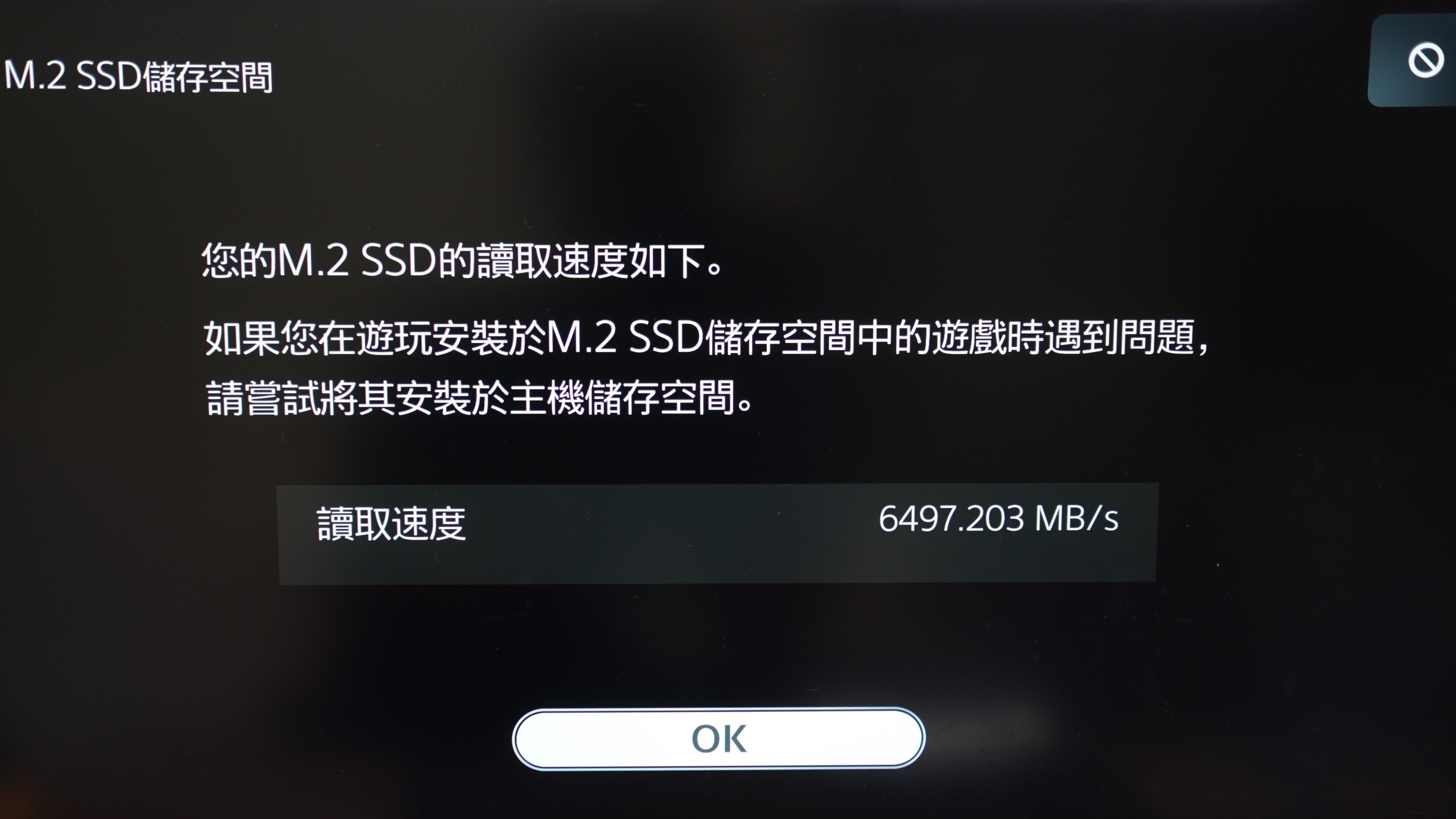 透過PS5主機實測 Samsung 980 PRO散熱片版 的連續讀取速度將近6500MB/s,速度遠高於要求的連續讀取速度5500MB/s,因此在由玩體驗上會有不錯的體驗。