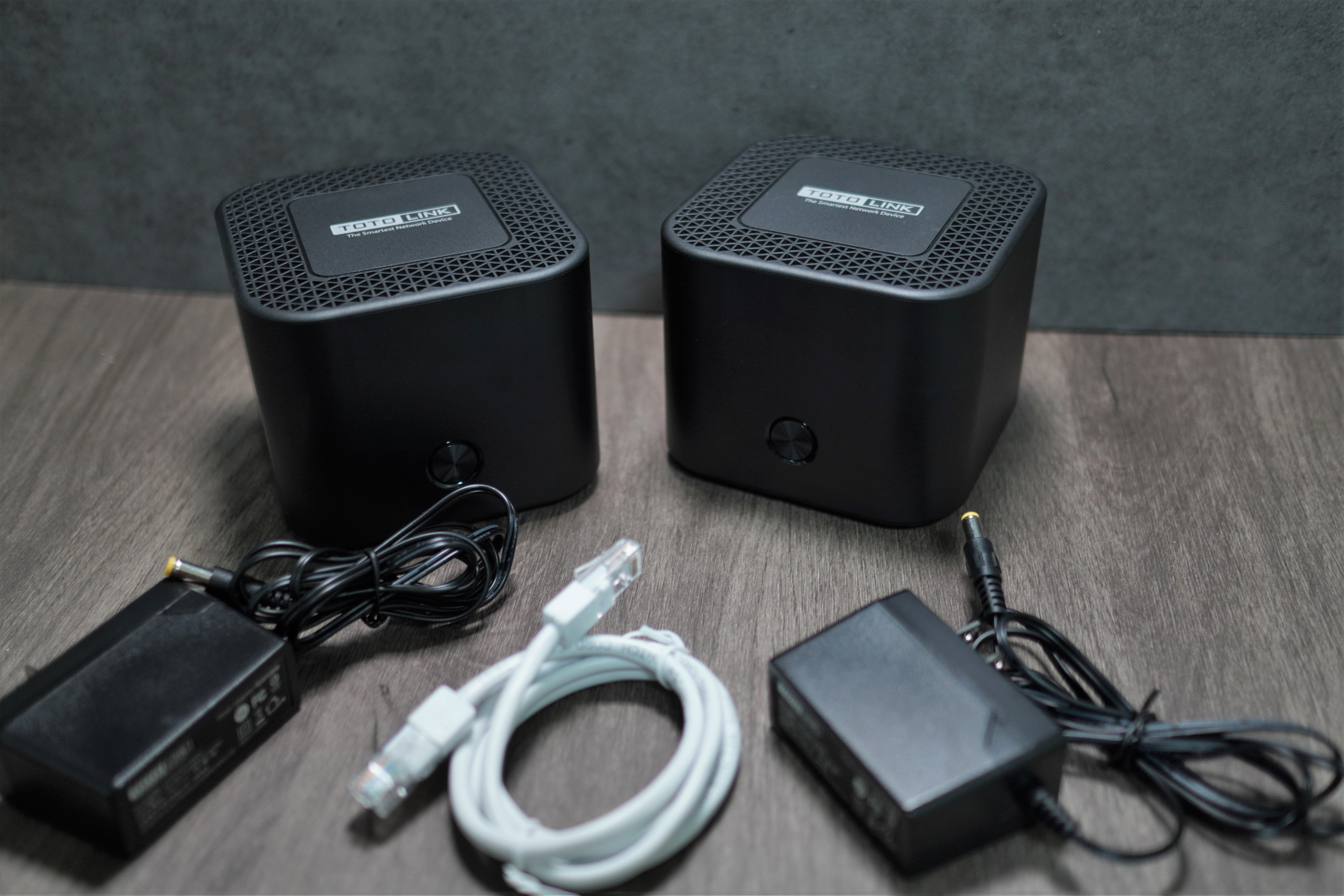 首先打開盒裝會看見主、從路由器本體與相關配件,其中盒內附贈的網路線是CAT5e規格,傳輸速率最大可達1000Mbps,基本上住家網路使用到1Gbps的方案都算夠用。