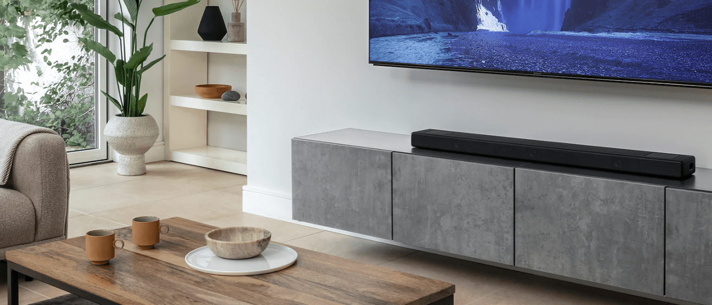 HT- A3000簡約機身完整配備3.1(.2)聲道,具備一對前置揚聲器和可突顯清晰人聲的中置揚聲器,加上兩側的重低音揚聲器更強化了深沉震撼的低音表現。