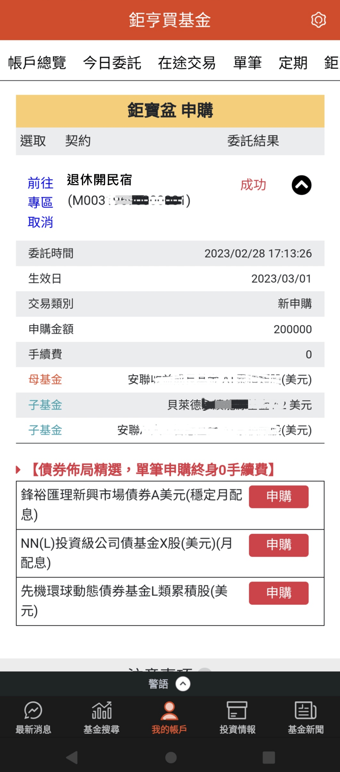 還有一點相當重要,母子基金投資法是以母基金投入子基金,子基金獲利再轉回母基金,因此在這些【轉入、轉出】過程的手續費就相對重要,一個沒注意到,長期的獲利就可能會被手續費一點一點吃掉。