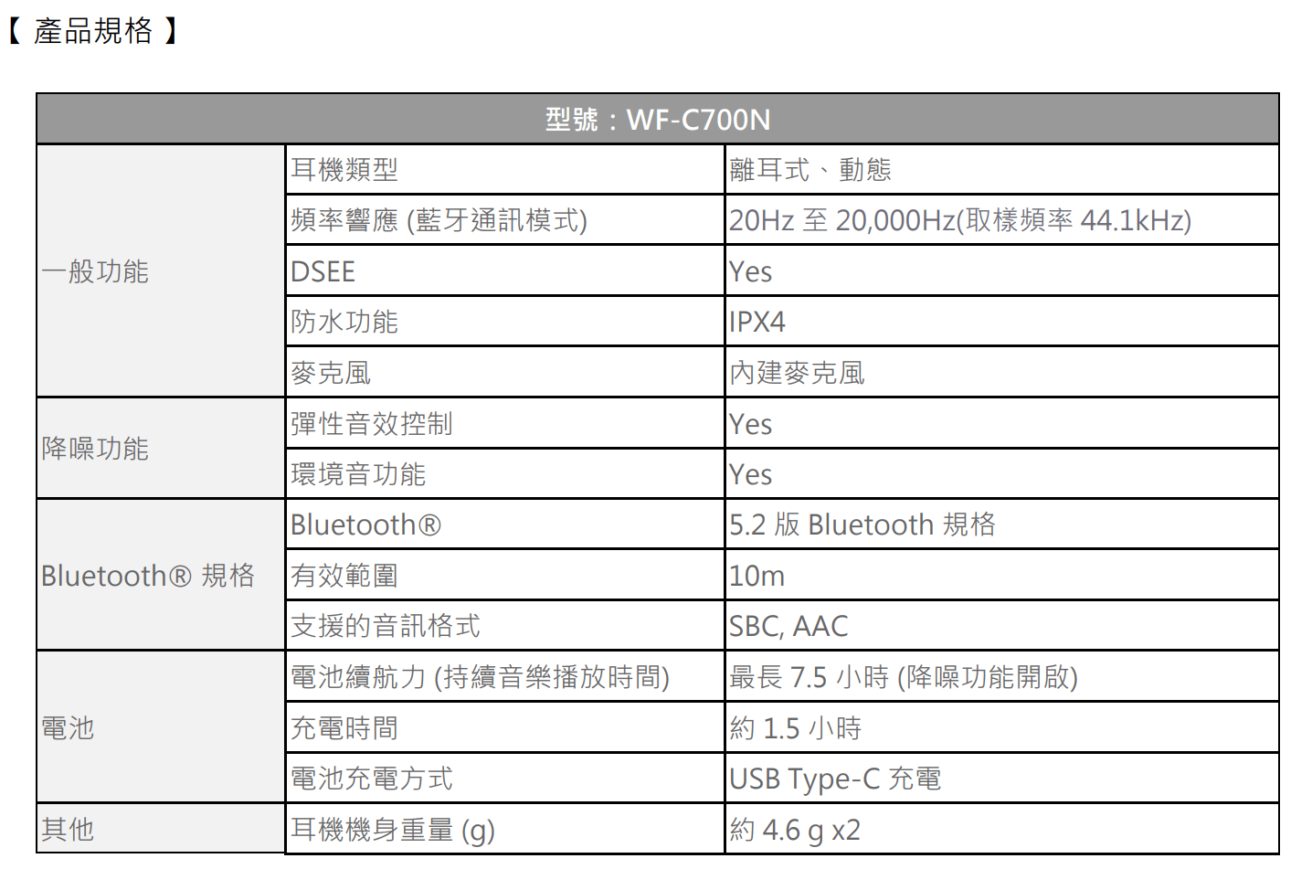 此外,WF-C700N採用Sony獨家聲學技術DSEE數位音質還原技術傳遞高品質音效術,可將串流影音平台壓縮過的音質以演算法還原細節。