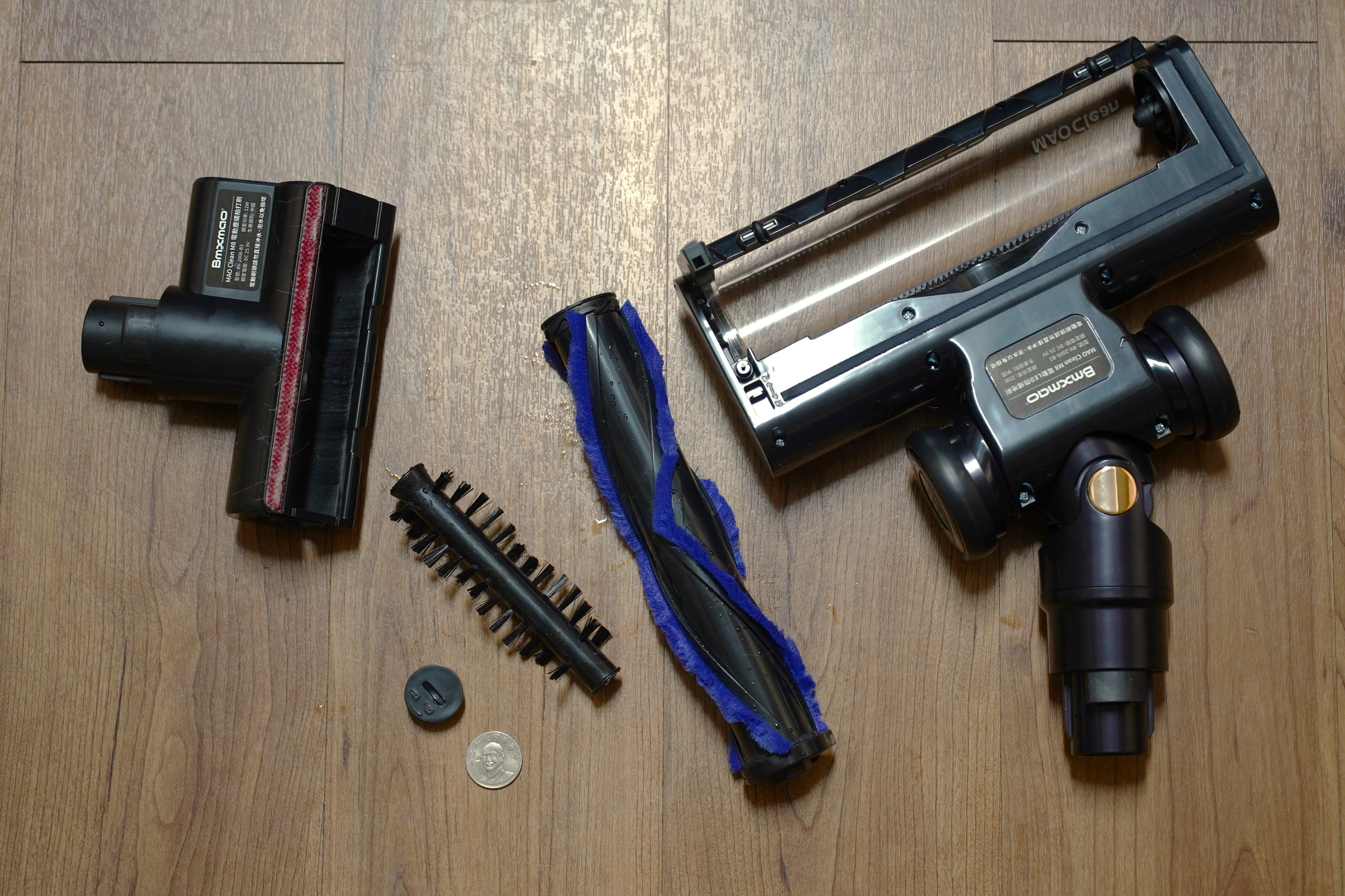 MAO Clean M8的盒裝內有三款電動吸地刷頭,首先第一個是防纏地刷吸頭,可以在磁磚地板、木地板、地毯等場地使用。