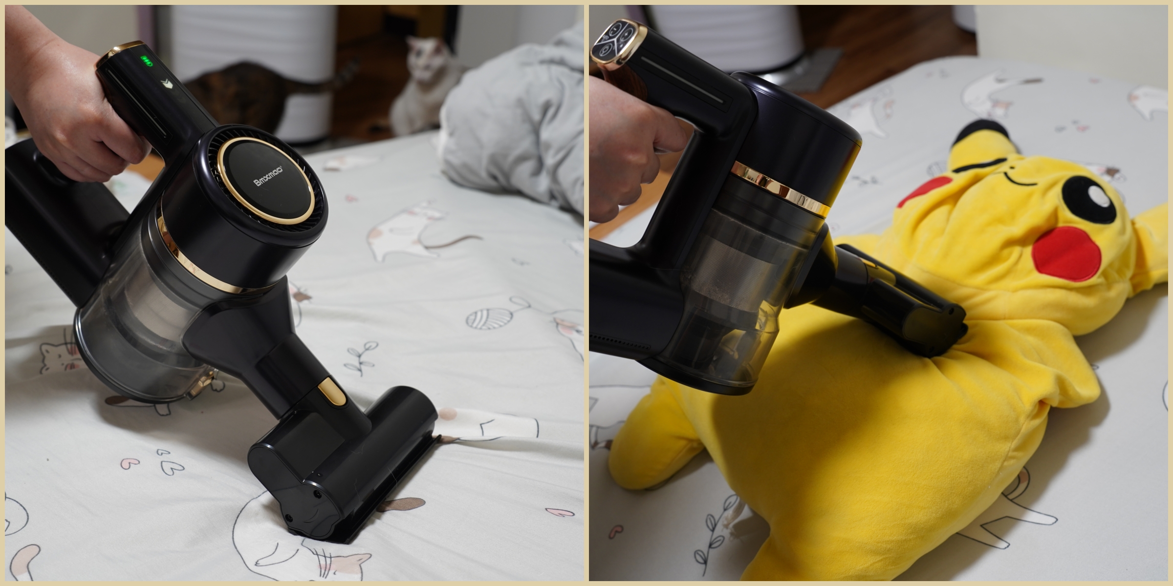 凱叔家中的毛孩們平時會跑到床上睡覺,在寵物換毛季節時,透過MAO Clean M8的塵蟎拍打吸頭就能輕易的把床單上或枕頭上掉落的的寵物落毛輕鬆掃除,看看那蒐集在集塵筒的毛球,是不是讓人相當有成就感。