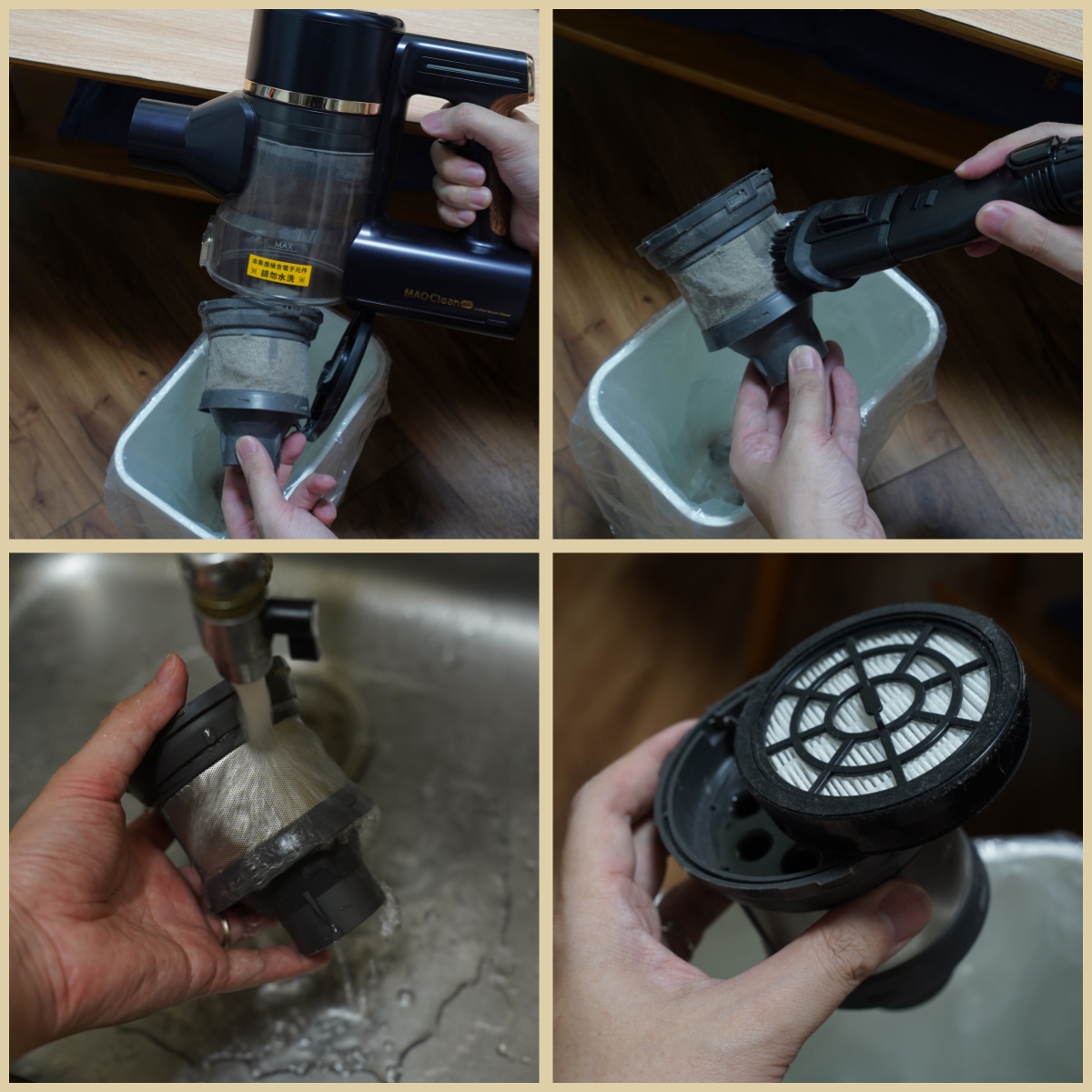 除了毛刷可以做水洗之外,吸塵器HEPA H13濾網與集塵錐也是可以進行水洗清潔,洗完曬乾後就能繼續使用,使用一段時間進行保養,才能讓吸塵器一直保持在最佳吸力效果!【※注意!因為集塵筒有微塵感應裝置,所以不能水洗喔】