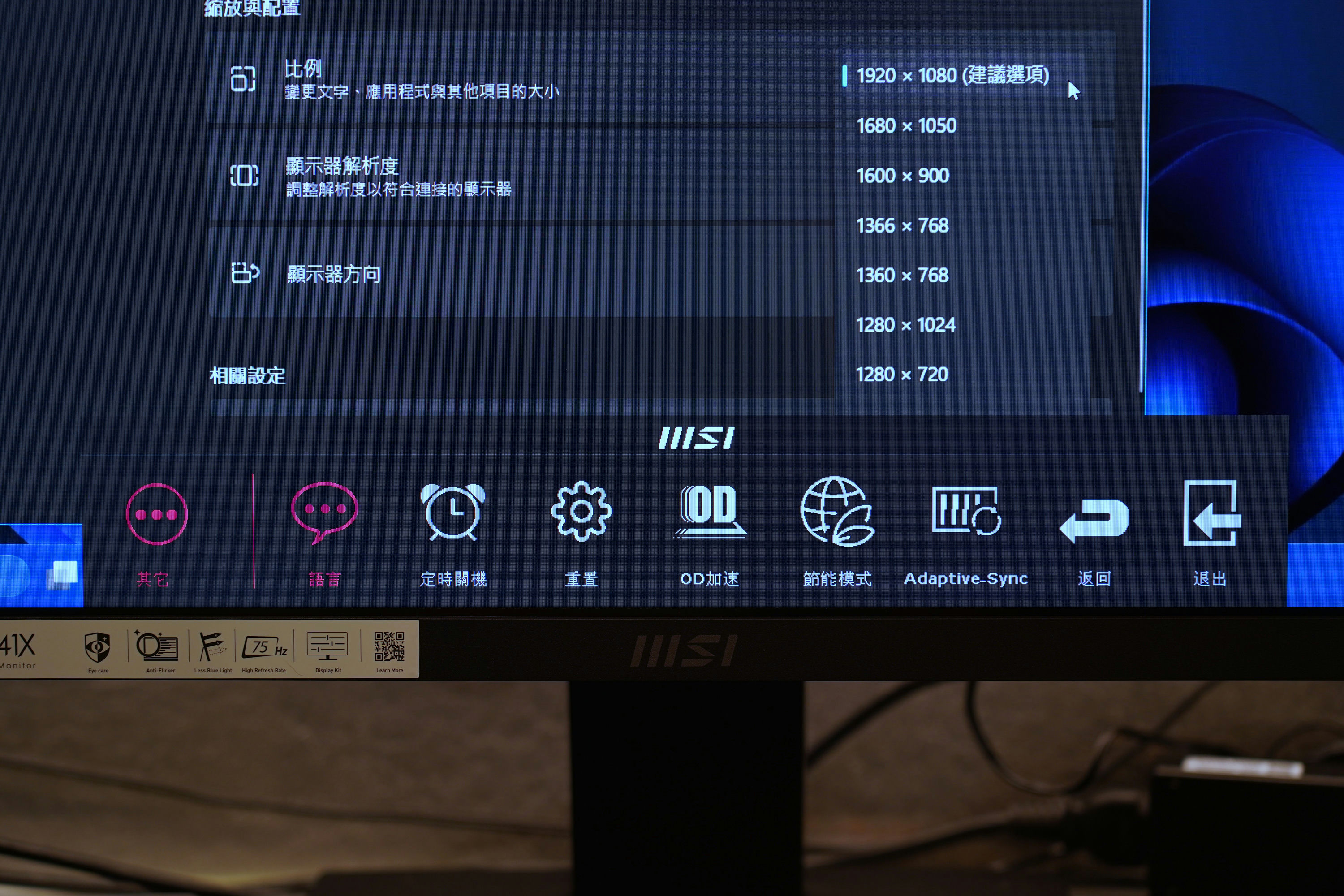 PRO MP241X的螢幕支援75Hz更新率,開啟Adaptive-Sync可以讓螢幕更新率和電腦GPU幀率有較好的相容性搭配,避免兩者對不上而產生輸入延遲畫面撕裂的狀況。
