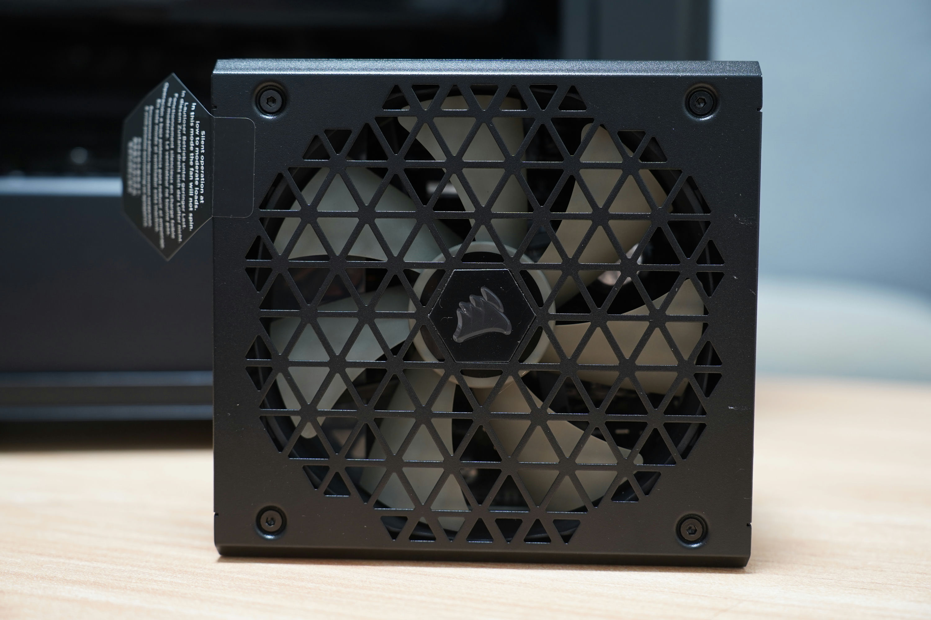 CORSAIR RM850x Shift在外觀上散熱孔也有設計巧思,第一眼看到還以為是精品包三宅一生的聯名款,但細看還是不同,它是由六個三角形組合成一個六角形的設計,相比常見的圓形洞洞真的好看許多。