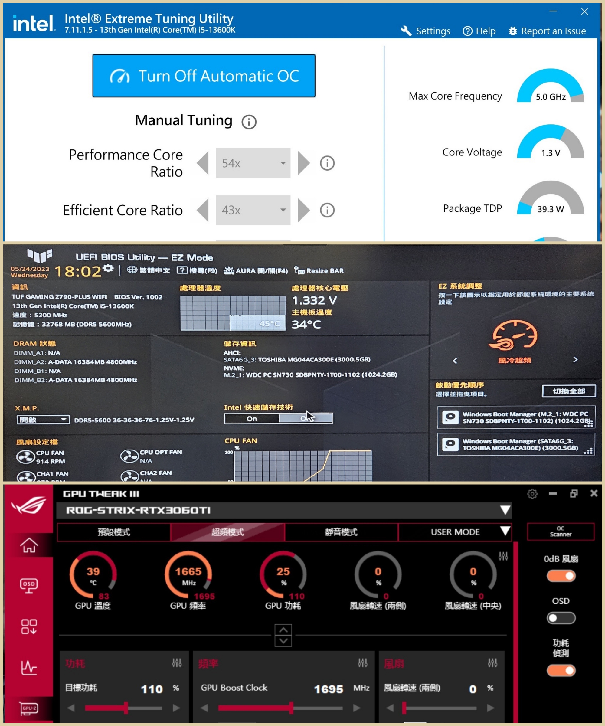 - 主機板:ASUS TUF GAMING Z790-PLUS WIFI