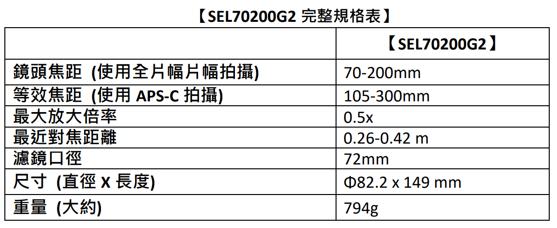 睽違9年!今 (7/12) Sony發布 E 接環 G 系列最新全片幅望遠微距變焦鏡頭 FE 70-200mm F4 Macro G OSS II 鏡頭 (型號 SEL70200G2),是結合眾多 Sony 獨家先進科技所推出的 G 系列 70-200mm 第二代鏡頭。