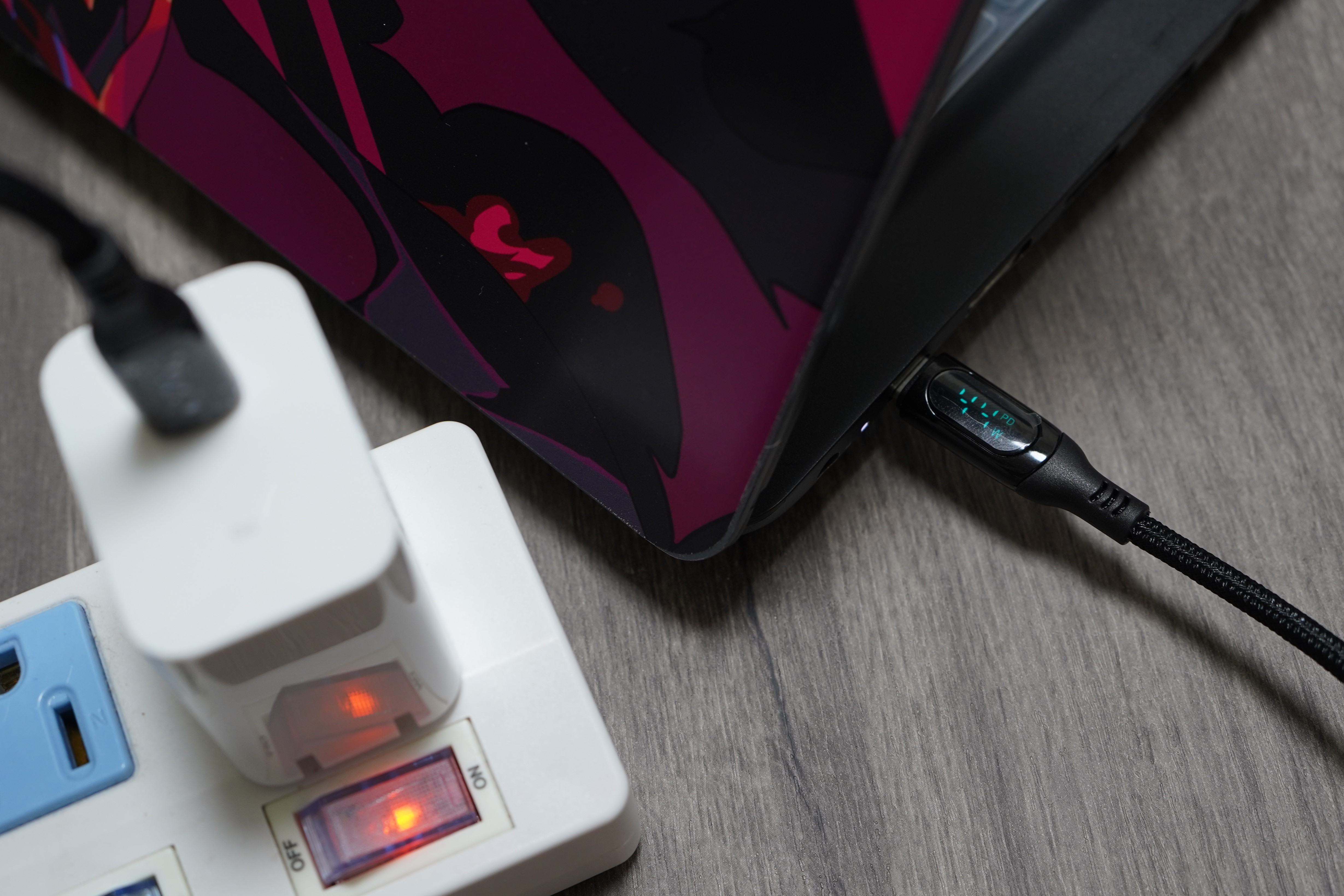 例如我同時幫筆記型電腦充電,與iPhone 15 Pro充電,電腦分配到的就是30瓦的PD快充而手機則是15瓦的PD快充。