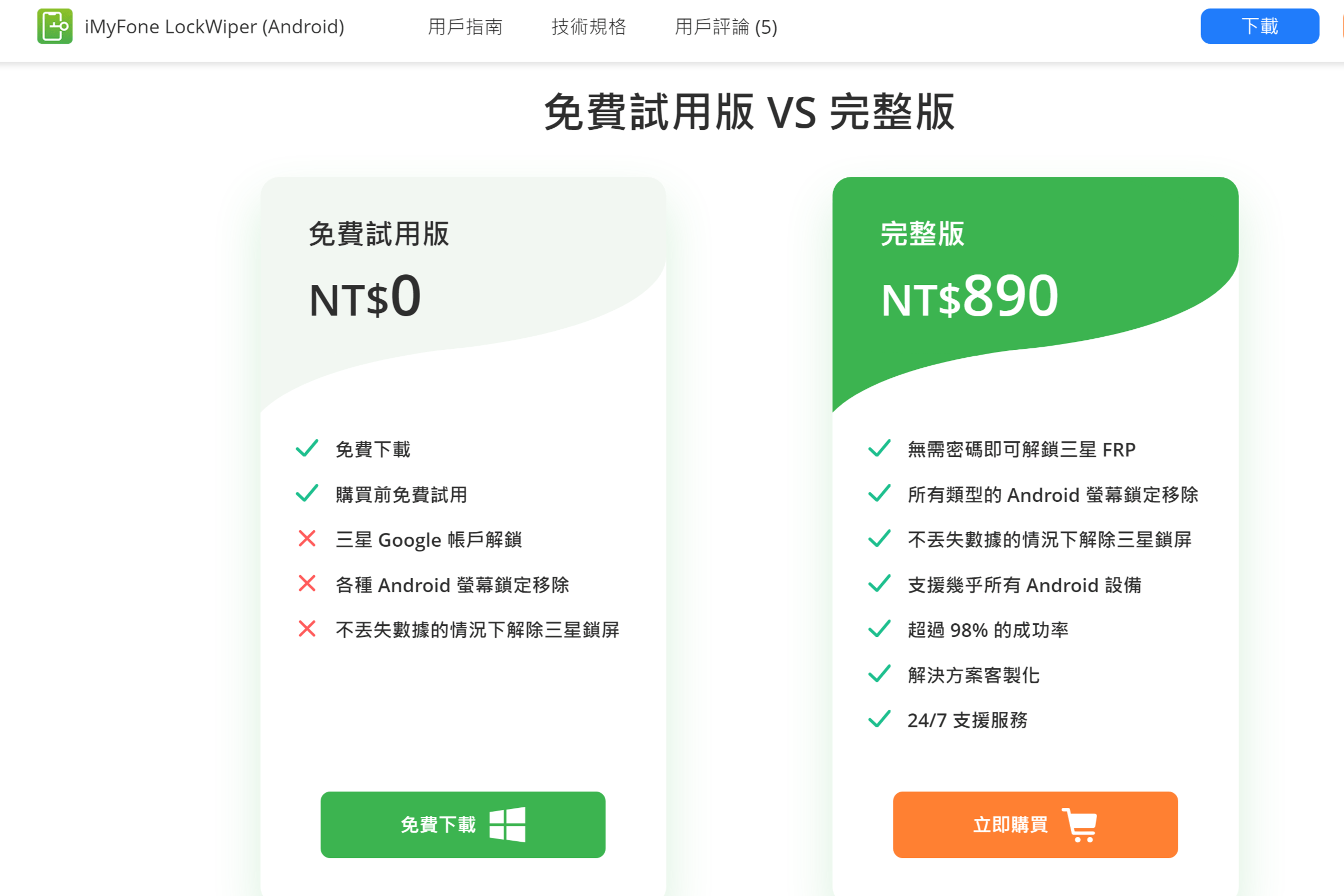 這邊凱叔就用以 iMyFone LockWiper (Android) 的體驗心得分享,而這套軟體會分體驗版跟付費版本,能使用的功能會有差異,可透過下方分析進行參考。
