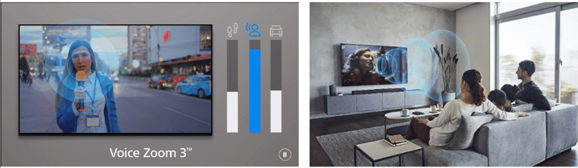 Sony全新BRAVIA 9/8/7系列支援獨家AI 聲源解析Voice Zoom 3功能,可透過人工智慧技術學習辨識人聲並加以放大突顯音量,即使是微弱的對話也能清晰聆聽。此外,除了支援Dolby Atmos 和DTS:X等空間音效,透過3D 環繞聲升級技術,即可從顯示器上方與側面營造出虛擬環繞聲,進一步提升到更加身歷其境的5.1.2聲道。