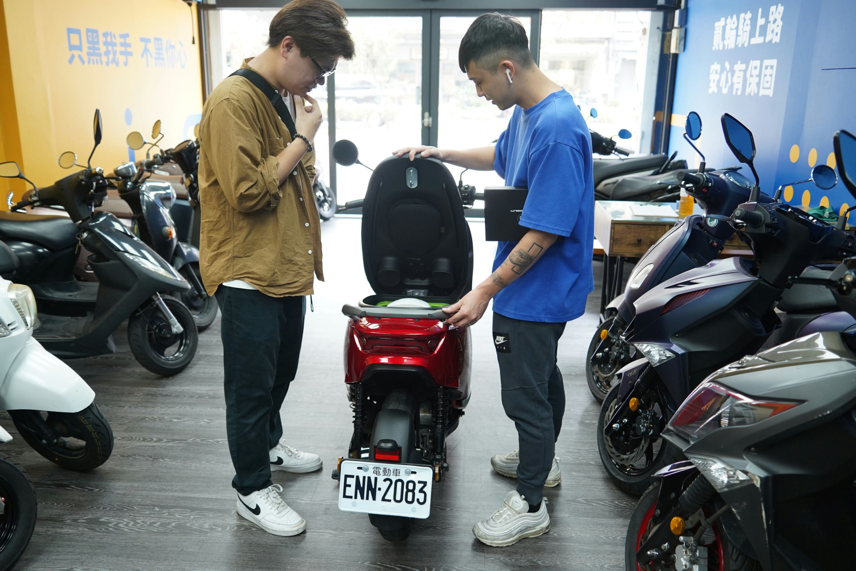 此外還有提供不同款式的安全帽讓你試放車廂空間,這是很多店家不會去注意的細節,讓我相當訝異;店長只笑說萬一買回去因為安全帽放不下而跑來退車,這對他也是相當很麻煩。