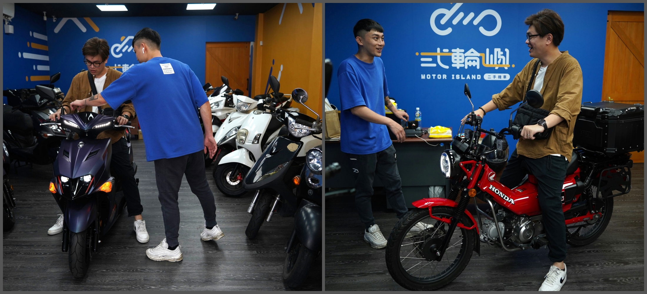 接著店長就幫忙把車牽到前場,開始說明車輛的狀況,只能說這炎炎夏日還能在冷氣房賞車真的是太加分,畢竟很多機車店都是開放式的沒有冷氣。