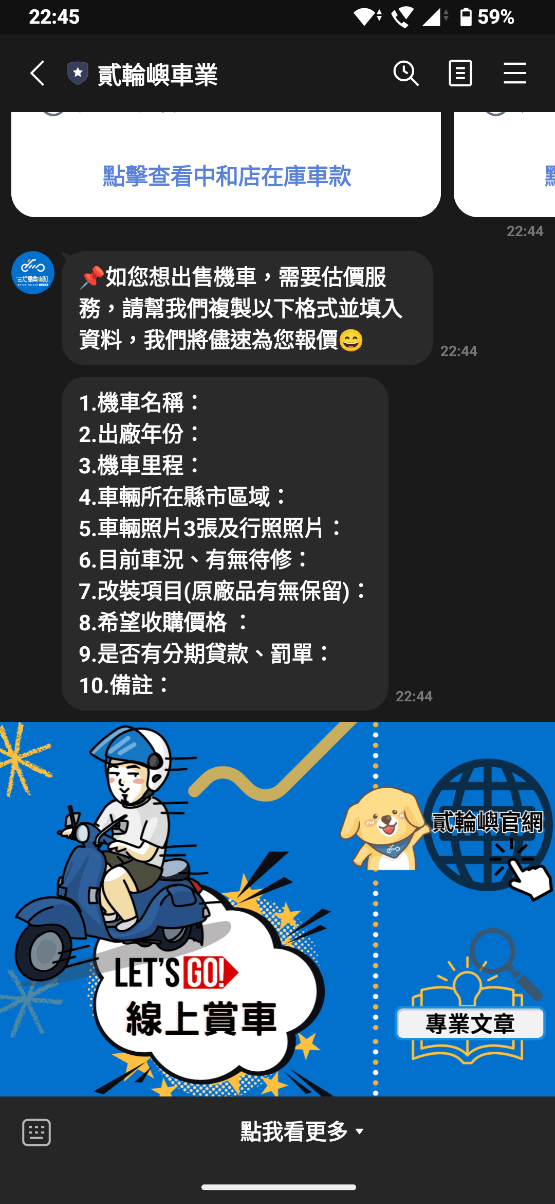 當範圍參考價格是可以接受的,接著就可以透過網頁加入貳輪嶼官方Line@進行線上資料填寫,他們會有服務專員依照你提供的資訊來進行 二手機車收購 線上報價。