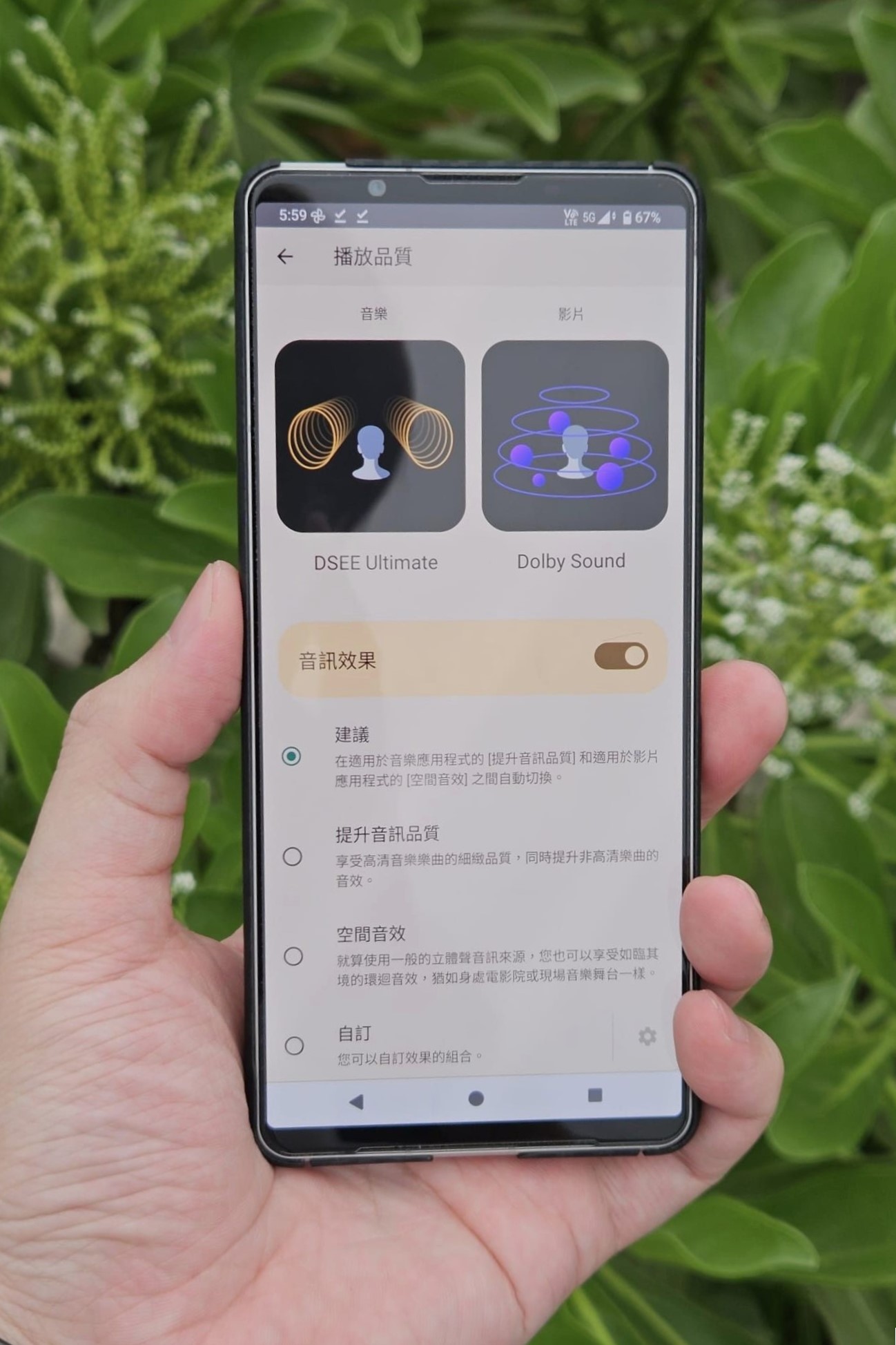Xperia 1 VI 這次在雙前置立體聲揚聲器升級更大的單體,因此外放聲音更加大聲立體,低音也更加飽滿,而系統軟體音效模式也與過往不同,過往「音樂」與「影片」的音效是共同套用,而在這一代是把兩者所需要的音效功能分開。