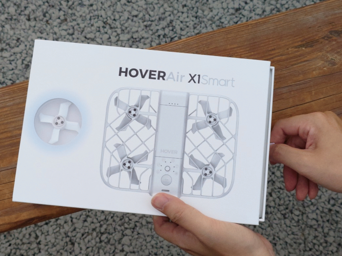首先拿到產品的第一件事情就是開箱啦! HOVERAir X1 Smart 設計相當有巧思,當你在拉出產品時,包裝盒左側的螺旋槳就會隨著轉動,讓消費者在開箱時能有滿滿的儀式感,相當的有趣。