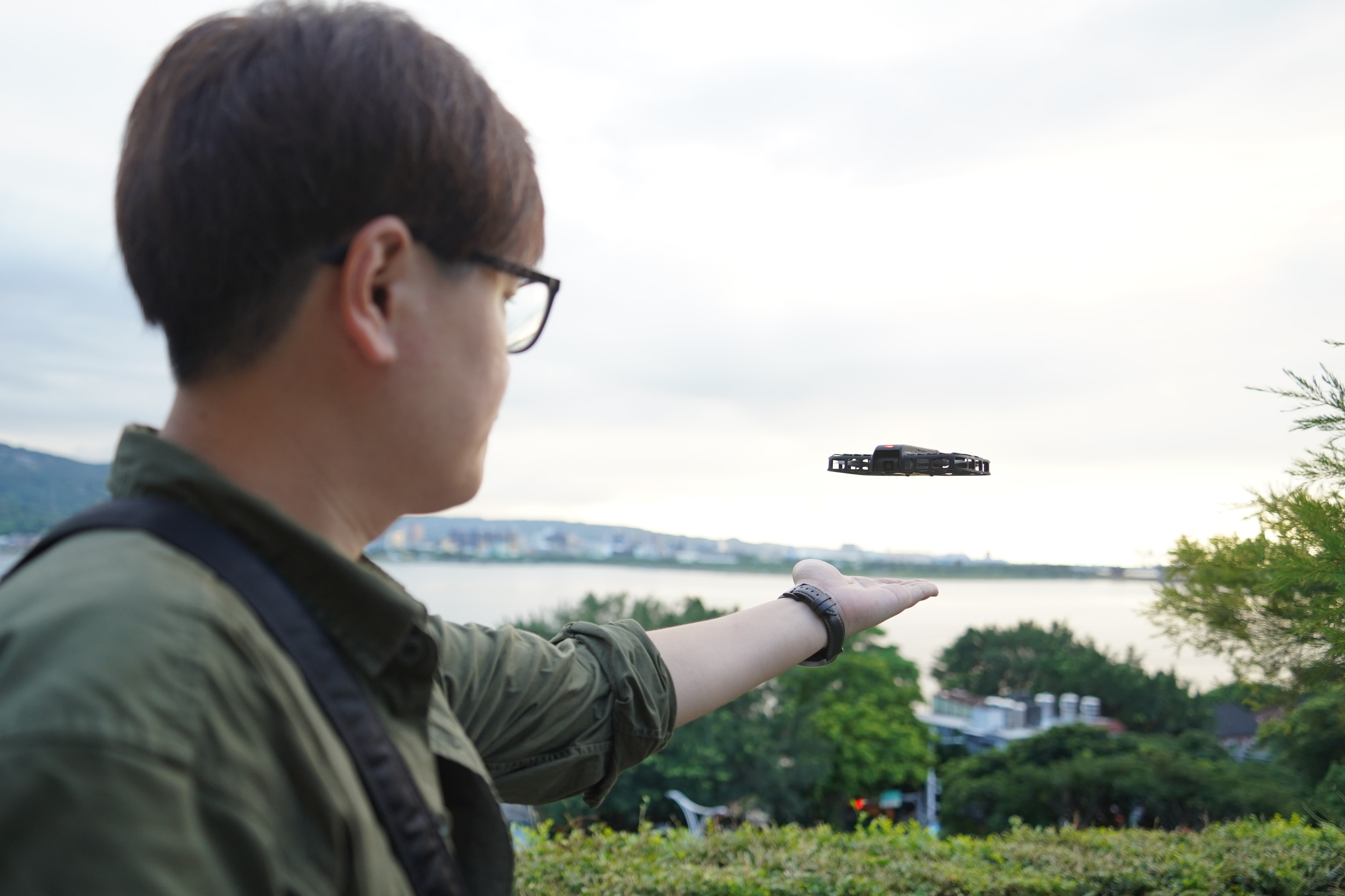 - 智能控制:辨識完成後由操作者的正面視角進行跟隨拍攝,並且可以透過手勢執行【漸遠】【環繞】【俯拍】三種拍攝方式與遙控降落。
