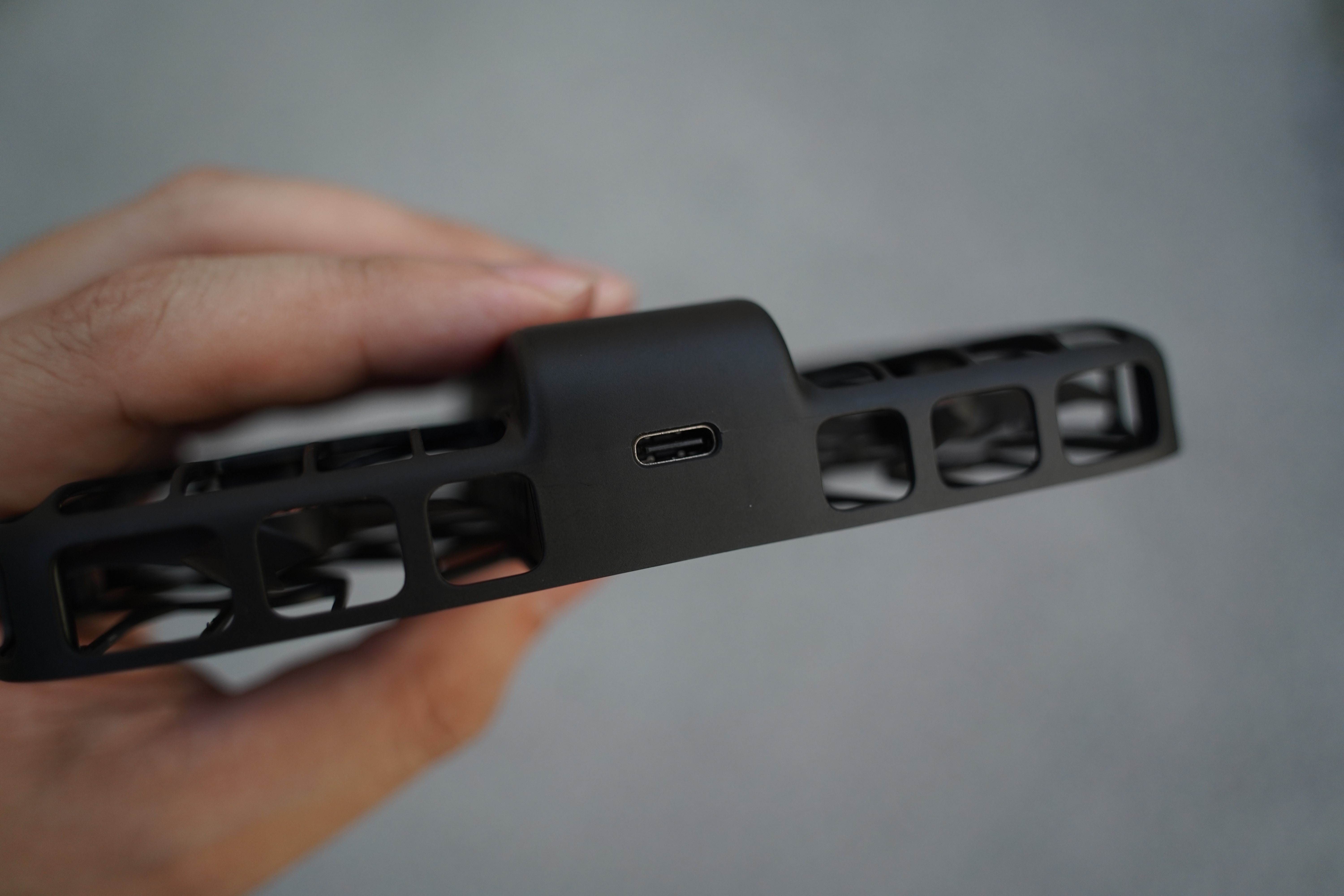四個螺旋槳葉片由保護邊框包覆,都採用最新研發的材料製作,實際觸摸的手感強韌有彈性,耐撞耐擠壓,不容易變形,也不會被螺旋槳劃到手,使用上相對安心。