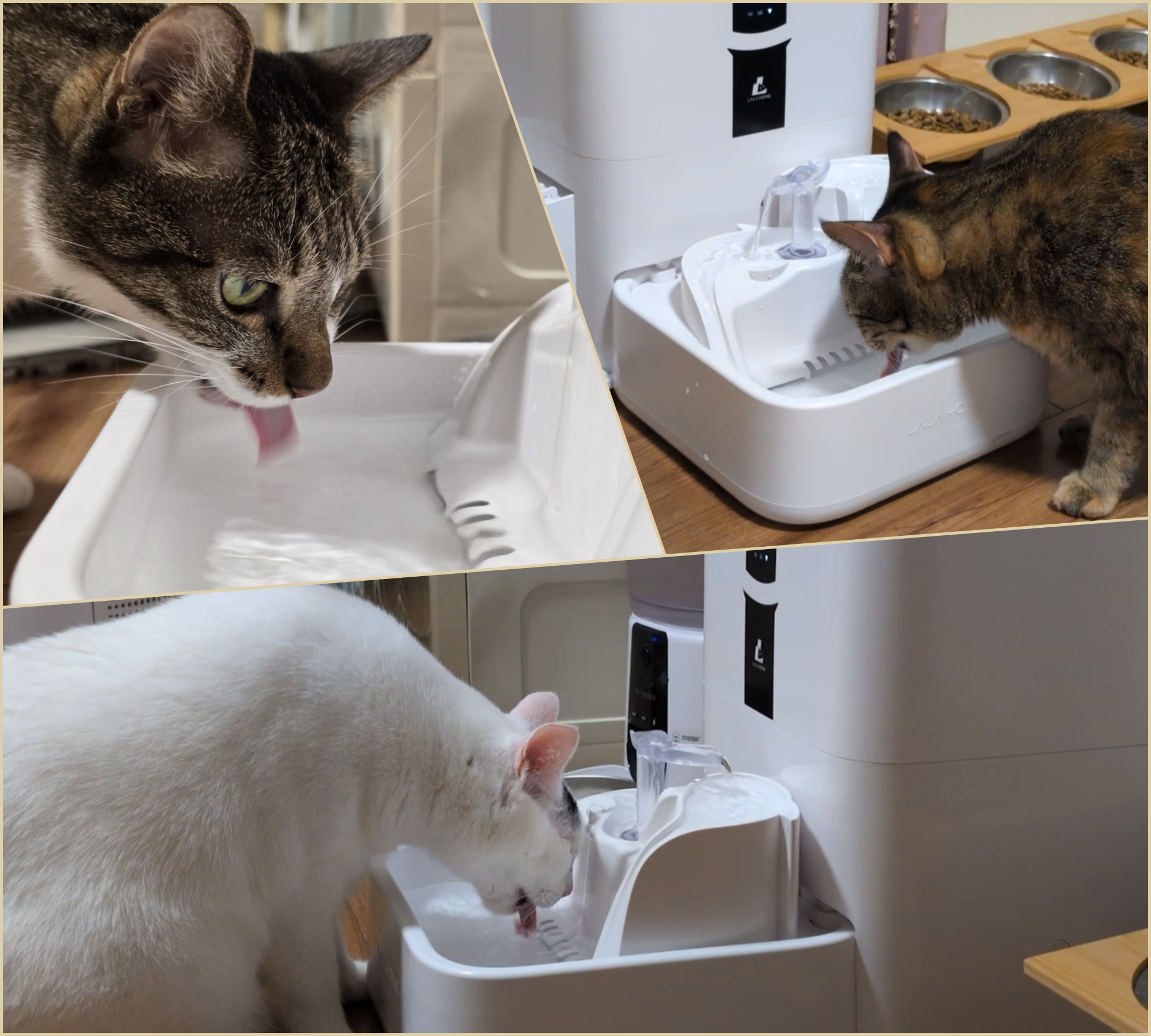 現在每次出門前,除了注意有沒有攜帶手機、鑰匙、錢包之外,還要再三確認屁貓們的水盆是否裝滿水,深怕牠們在我離開的時候口渴,不過即使如此,我也無法確定牠們在我離開的時候是否真的有喝足夠的水。