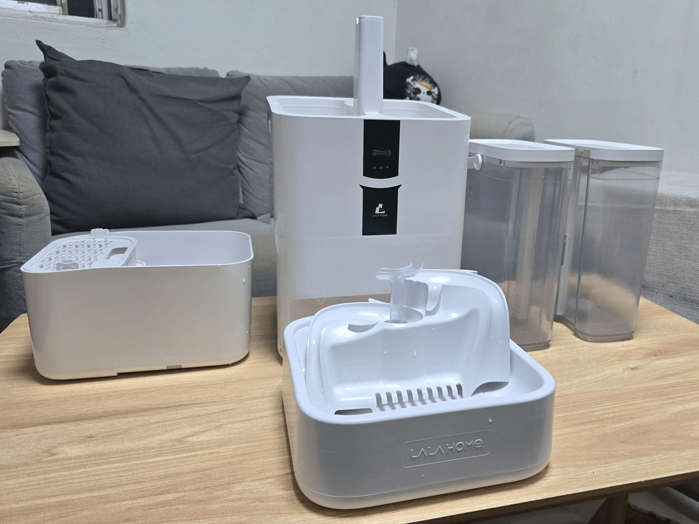 首先從盒裝取出會看到「主機」、「5公升淨水箱兩個」、「OxygenZ增氧飲水盆」、「汙水箱」共四大物件,另外電源供應器與周邊相關小配件。