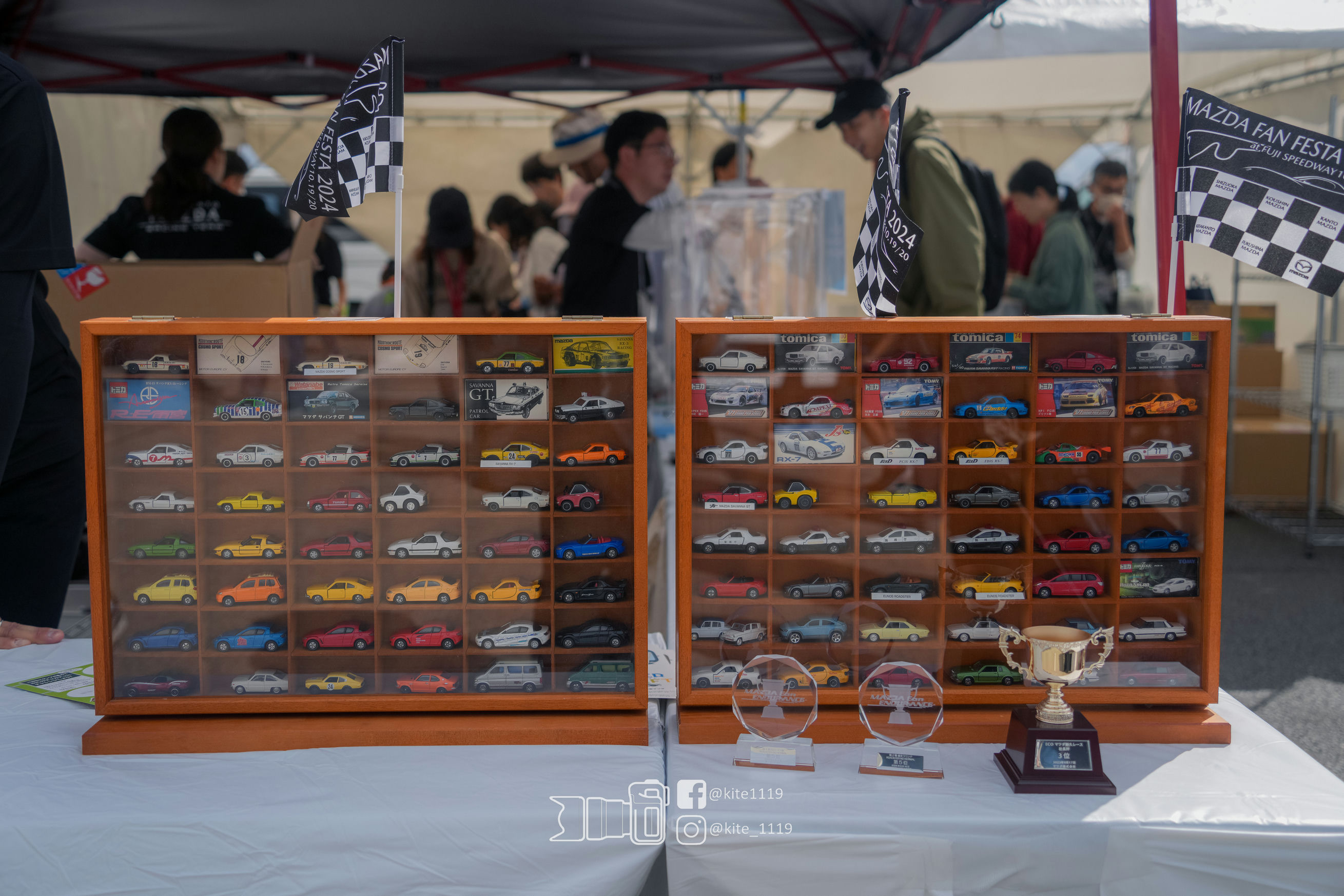 參加活動就少不了特別的紀念商品,這次在 Mazda Fan Festa 活動會場除了有剛發表的35週年紀念版的MX5模型車、Mazda概念車模型、Mazda 2 賽道版本模型車、精品保溫杯、服飾等,讓粉絲們來到這場活動也能把滿滿回憶帶回家。