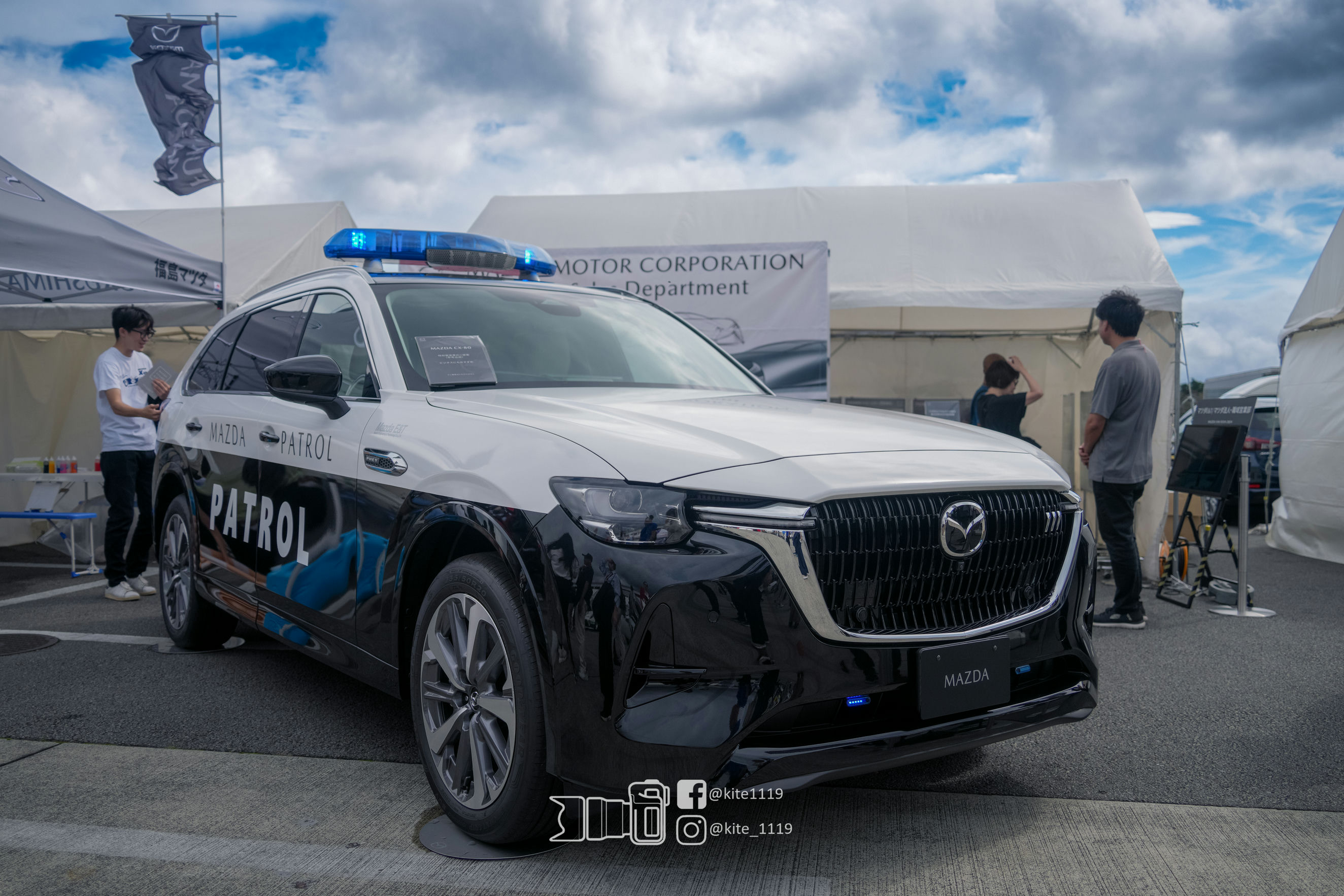 在戶外場地的周邊也有官方設攤,現場除了展示出運用轉子引擎打造的市售電動車Mazda MX30 Rotary-EV,還有台灣無緣上市的Mazda CX80,當地則是有巡邏車樣式。