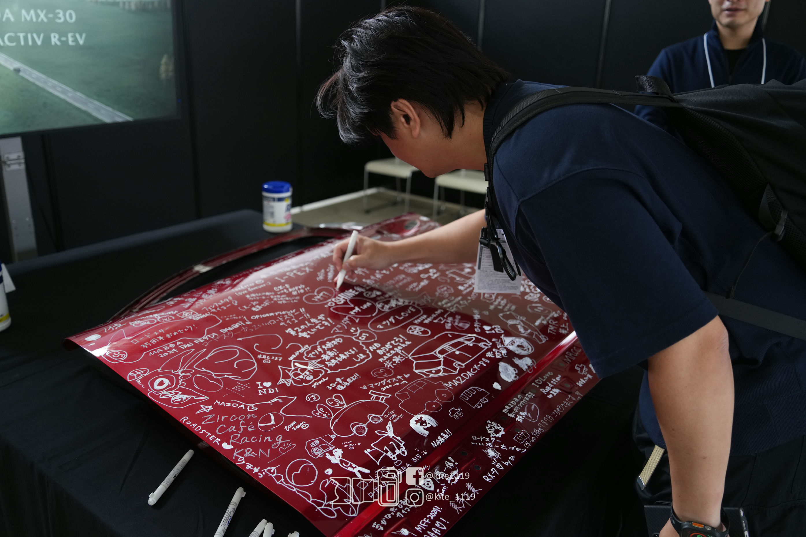 還有魂動紅是怎麼來的,現場更是提供了一片CX60的引擎蓋讓來賓簽名,這應該是我這輩子不會在自己的車上做的事情😂