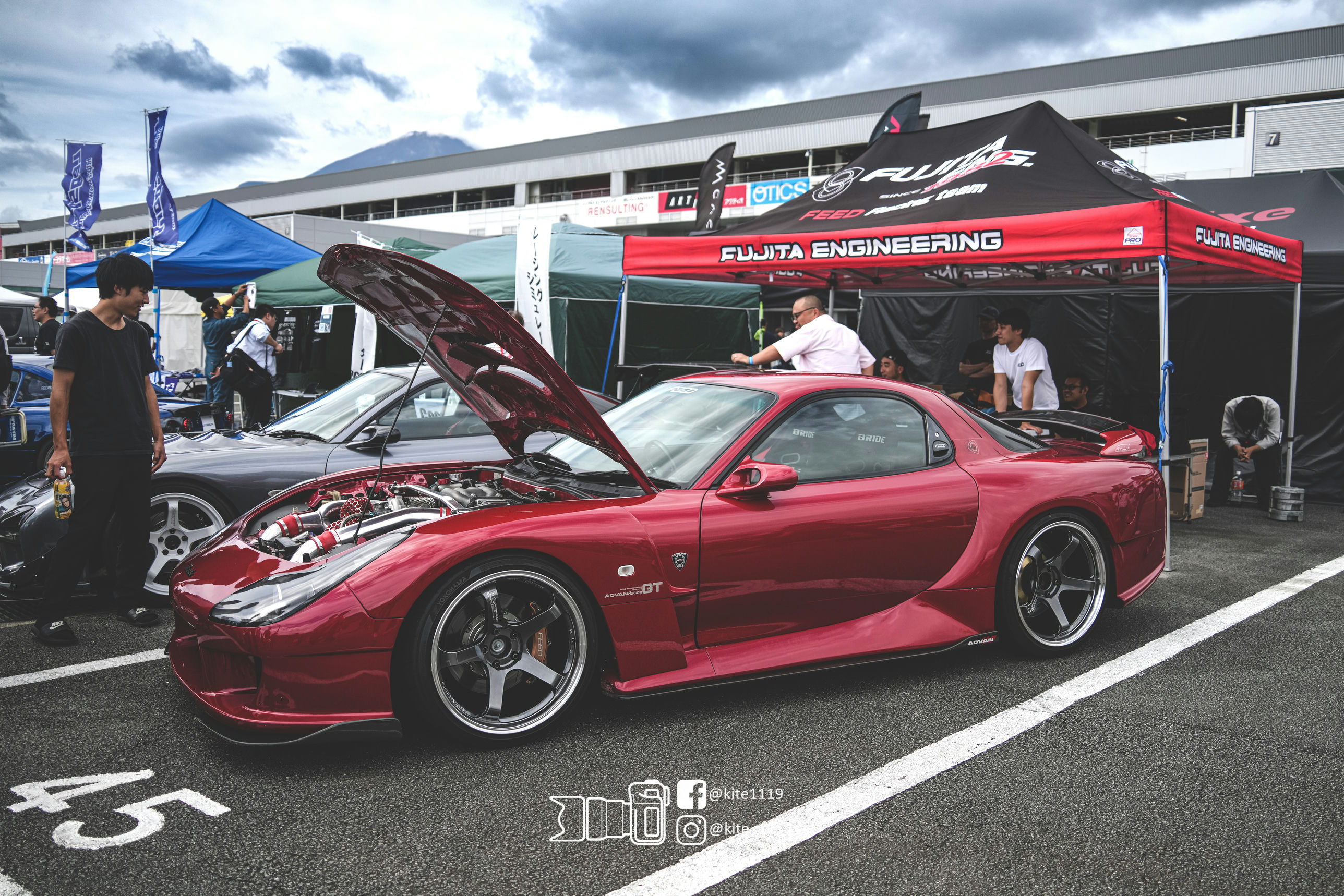 這一天果然是Mazda的日子,從御殿場 PREMIUM OUTLETS前往富士國際賽道的路途可以看見許多馬自達的車在往同一個方向移動,連罕見超原廠的RX-7也在這一天出現!