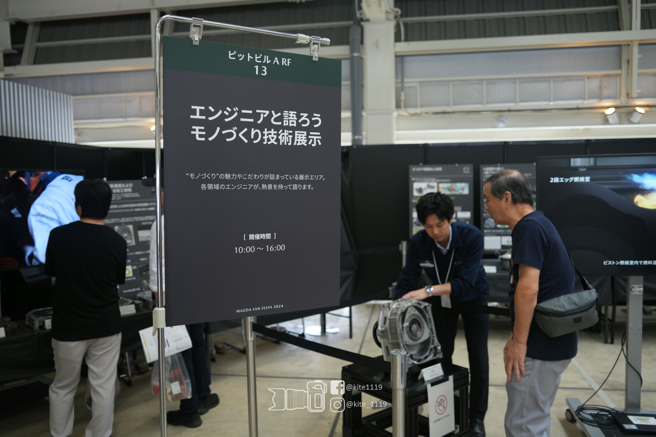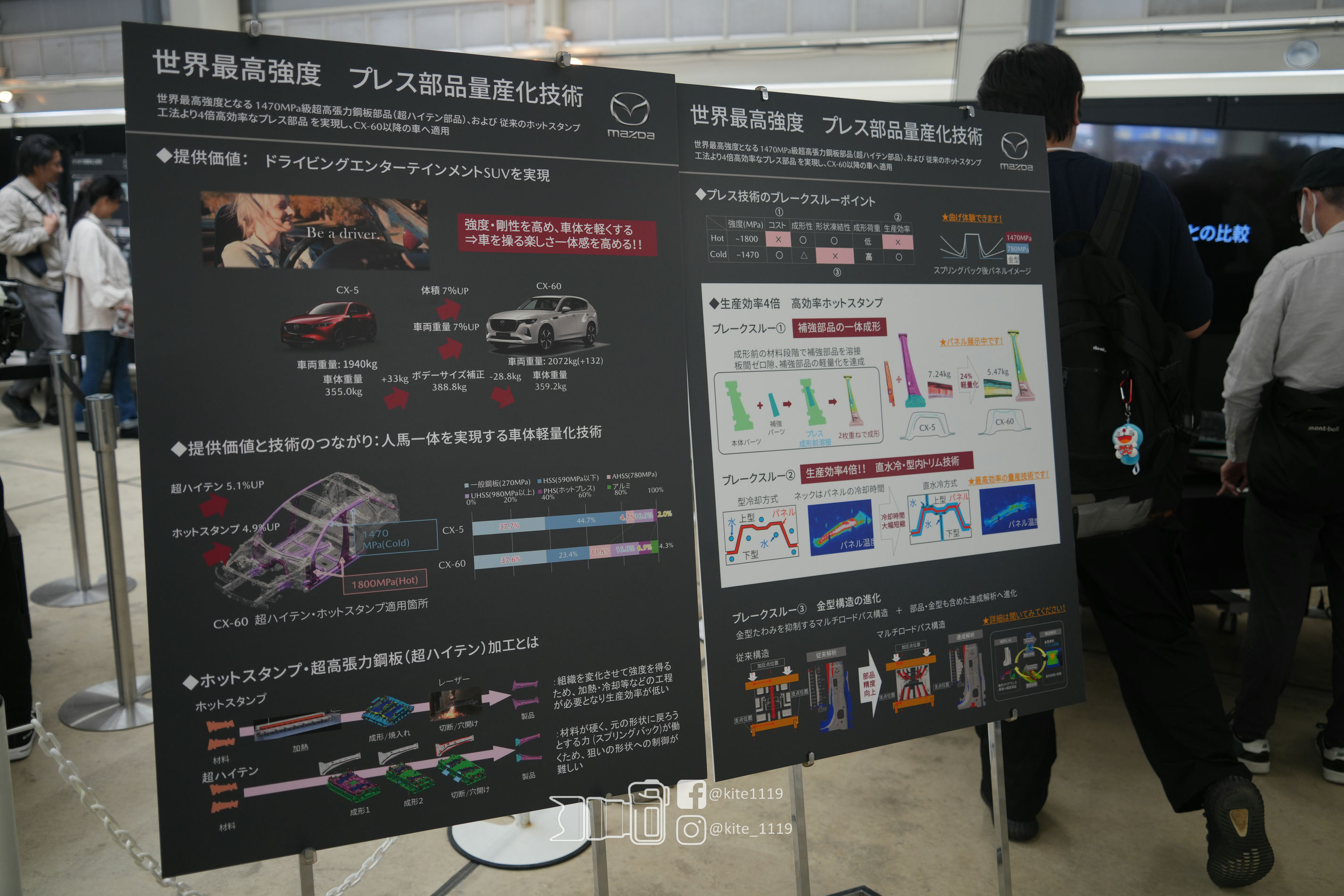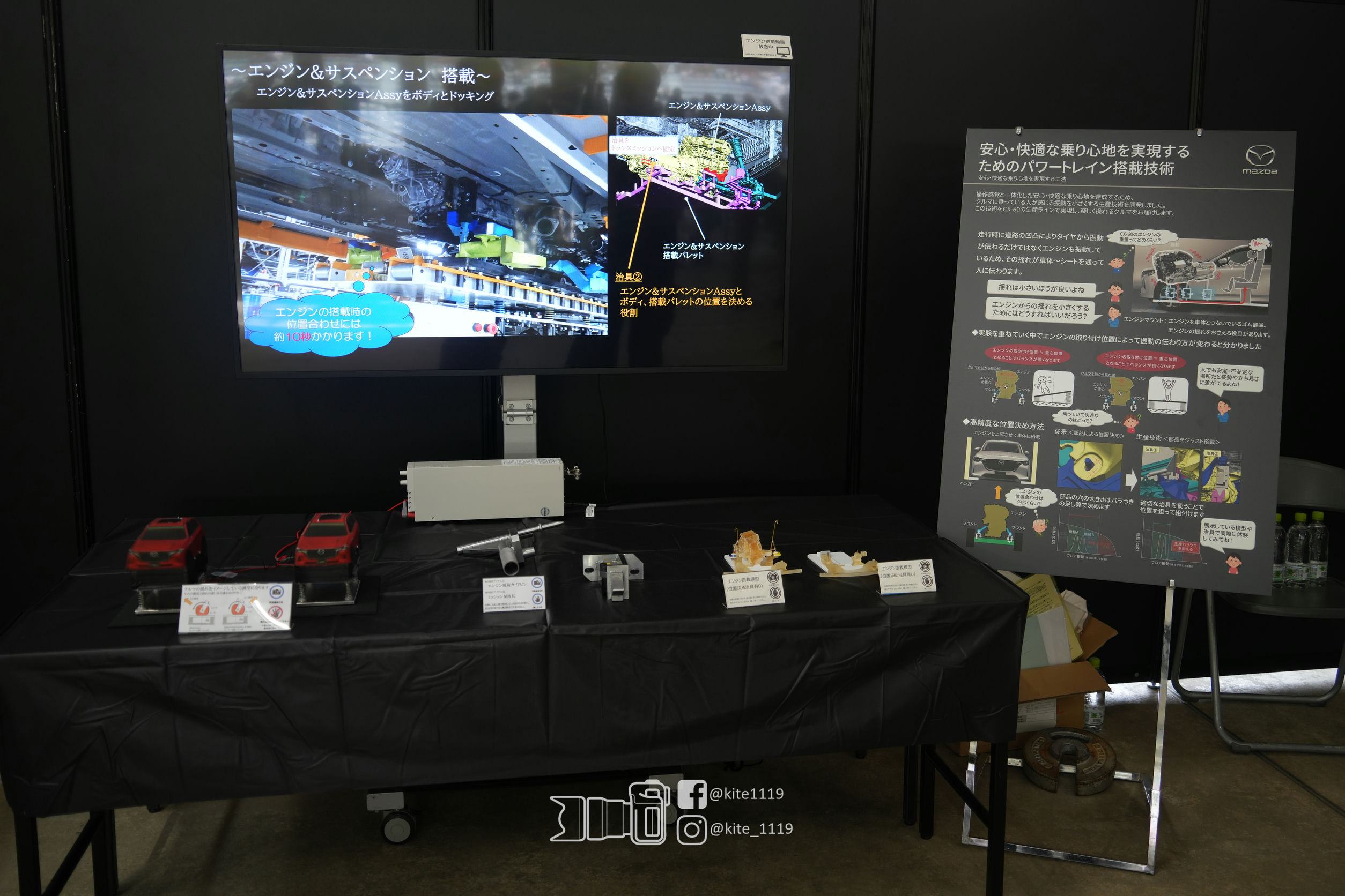 在這次活動內容裡面,有一大塊展示區解說目前Mazda的造車科技有哪些,而且解說的技術人員都是參與該項目的開發打造的人員來進行解說。